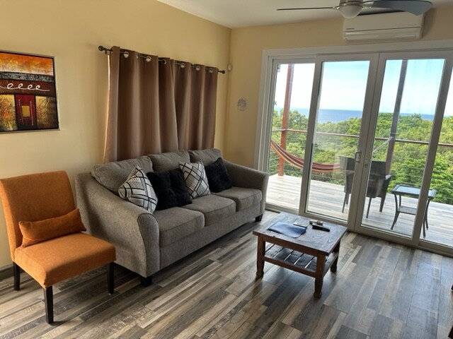 Dobrodošli v svoji naslednji idilični suiti Tree Top. V celoti opremljena kuhinja je pripravljena na kulinarične pustolovščine, kraljevska spalnica pa ponuja mir in pridih šarma otoka Roatan. Steklena drsna vrata v dnevni sobi omogočajo dostop do zasebnega balkona s teraso, kjer lahko uživate v pogledu na ocean in bujni panorami džungle na zunanji sedeži za 2 osebi, medtem ko pijete jutranjo kavo. Le sprehod do plaže ✔ Zasebni vhod ✔ Zasebna terasa Zakonska postelja✔ (King) Pogled na✔ ocean ✔Bazen Na ✔ samem