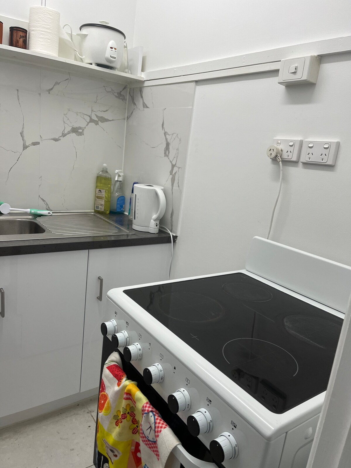 Popolnoma samostojna enota. Popolnoma opremljena kuhinja in lastna kopalnica. Primerno za pare ali posameznike. Za 2 osebi, vendar je na tleh dovolj prostora za otroško posteljico ali vzmetnico iz pene. Sporočite nam, če potrebujete vzmetnico na tleh. Fotografije prikazujejo celoten prostor, kakršen je, 100 % natančno. Google televizija z Netflixom itd. V bližini sta 2 avtobusni postaji Uporaba pralnega stroja stane 5 $ za eno noč bivanja.