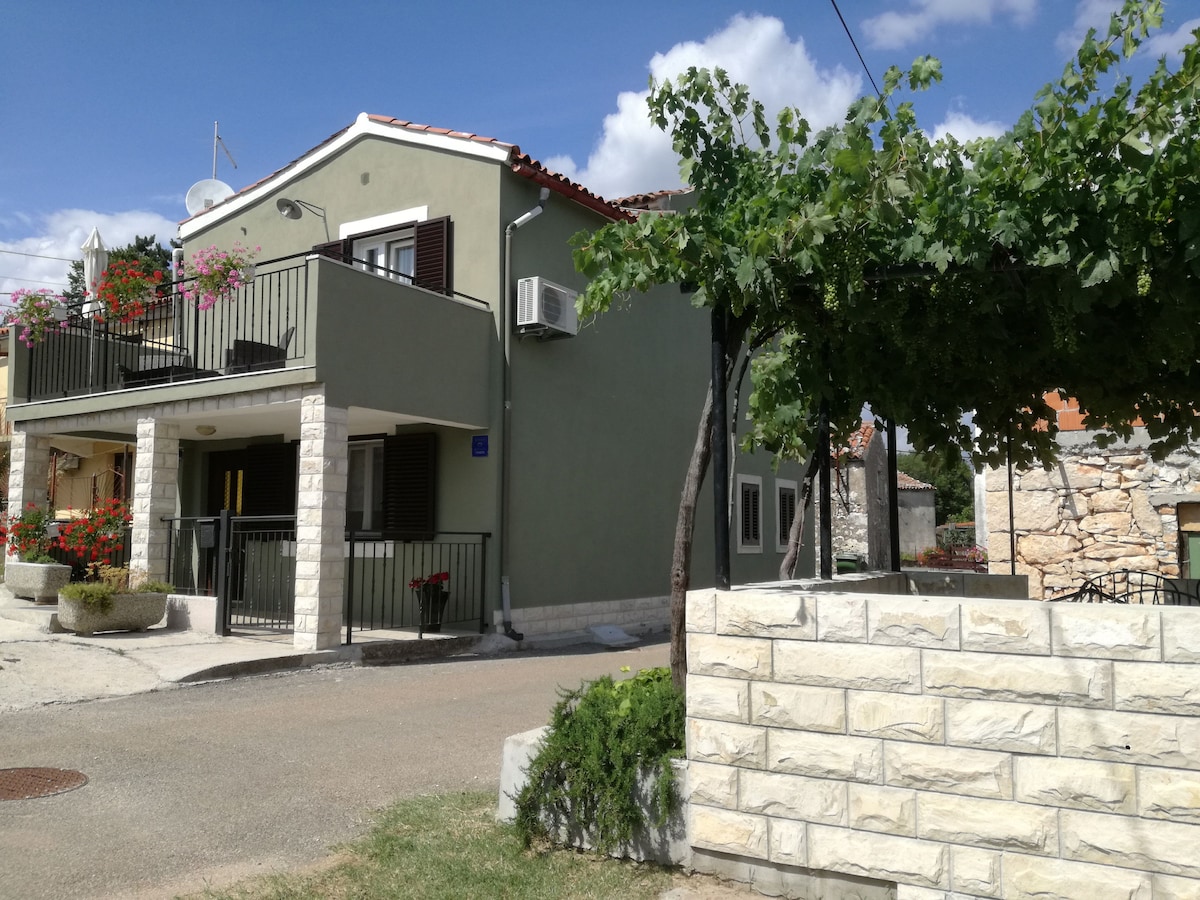 Apartma se nahaja v tipični istrski kamniti hiši obnovljeni leta 2018 in s 3000 kvadratnimi metri vrta in vinogradov, priročno za dosego labin centra (500m). Ima mansardno spalnico z zakonsko posteljo, kuhinjo/dnevno sobo z udobnim kavčem za 2 osebi in kopalnico. Apartma je namenjen izključno gostom. Zunaj je velika terasa in prostor za žar. Brezplačno zasebno parkirišče je vključeno.