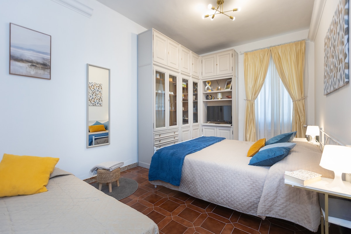 Elegant apartment in a prestigious historic building, just 50 m from Piazza Navona, the heart of Baroque Rome, surrounded by the famous fountains of Bernini and Borromini. Finely furnished, it offers two bedrooms with private bathrooms; the master bedroom features a whirlpool tub for moments of pure relax. On request, the sofa bed in the living room can accommodate additional guests. Its exclusive location and refined atmosphere make this accommodation perfect for an unforgettable stay.