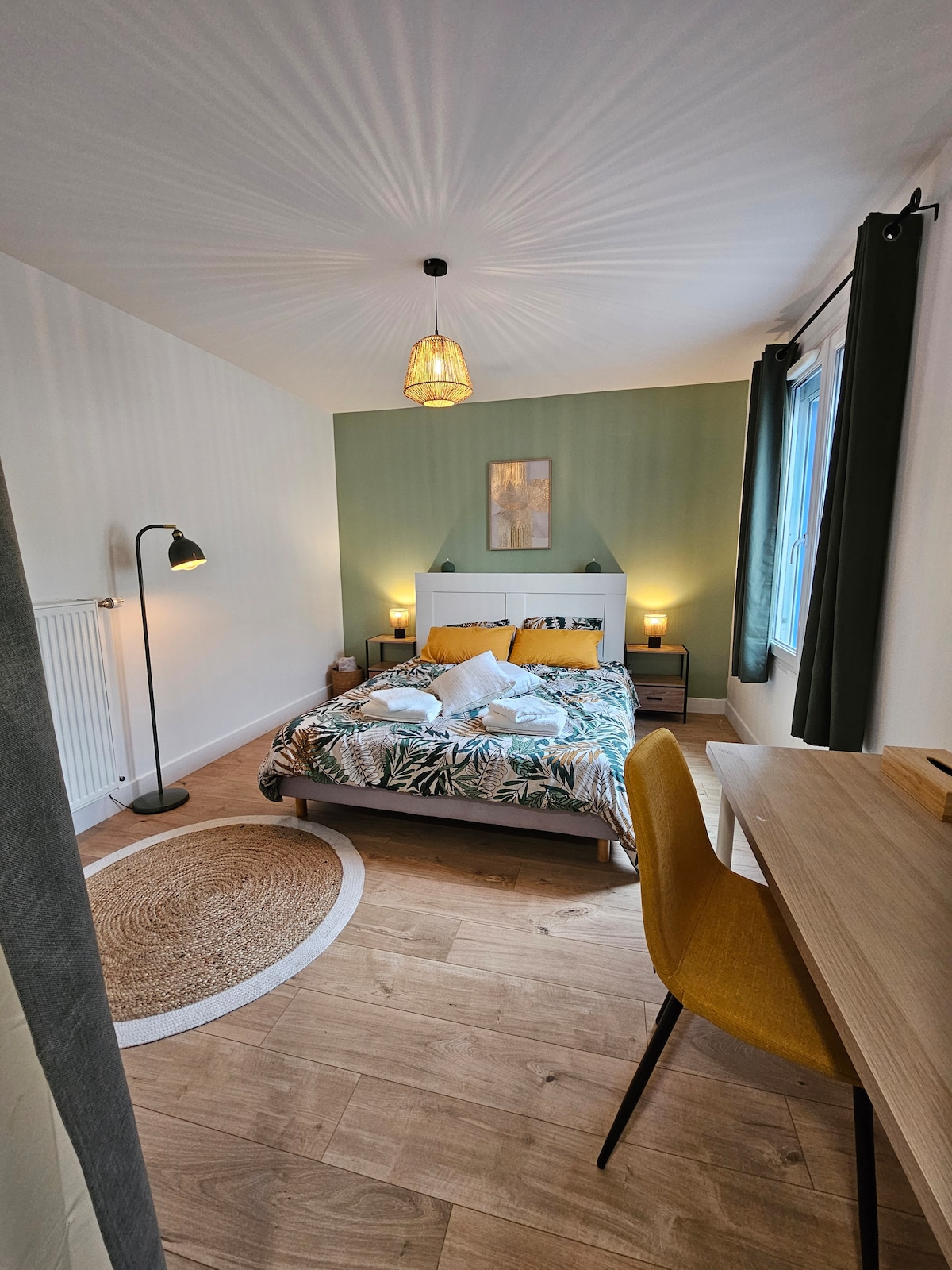 Dobrodošli na kmetiji Choinel v našem prenovljenem skednju, ki združuje čar in sodobno zasnovo. Sprostite se v tem udobnem gnezdu v bližini mesta (15 minut od Rennesa) in na idealni lokaciji 40 minut od morja. Uživajte v panoramskem razgledu na podeželje in Château de Beauvais. Odhajamo iz vasi z vsemi dostopnimi trgovinami. Skedenj ima 4 spalnice, od katerih imajo 3 kopalnice z lastno kopalnico. Odlično za delo na daljavo, turiste, profesionalce, družine in prijatelje.