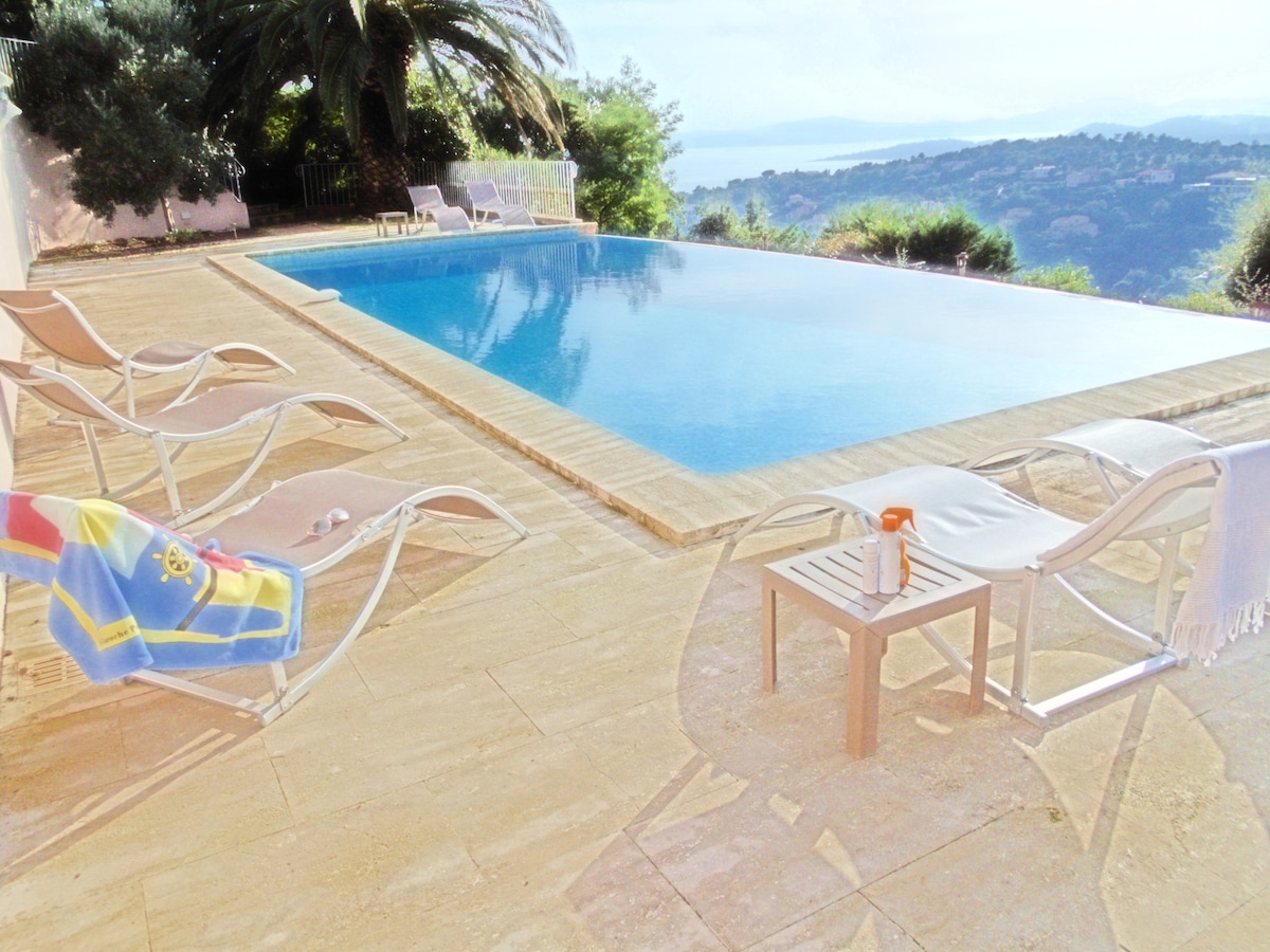 Vue époustouflante sur la Méditerranée ・Grande terrasse + jacuzzi face à la mer ・Proche de Nice & Aix en Provence à 1h30 ・Idéal pour visiter Saint-Tropez ・Piscine de 55 m² ・Jacuzzi pour 4 personnes ・Pool house ・Parking gratuit & sécurisé 1 voiture ・Climatisation dans chaque chambre ・WIFI gratuit ・Cuisine tout équipée ・Équipement enfant et de plage Vous vous détendez dans un cadre idyllique. Vous profitez aussi de 2 salles de bain chics. Hamac, TV, boulodrome pour un séjour inoubliable.