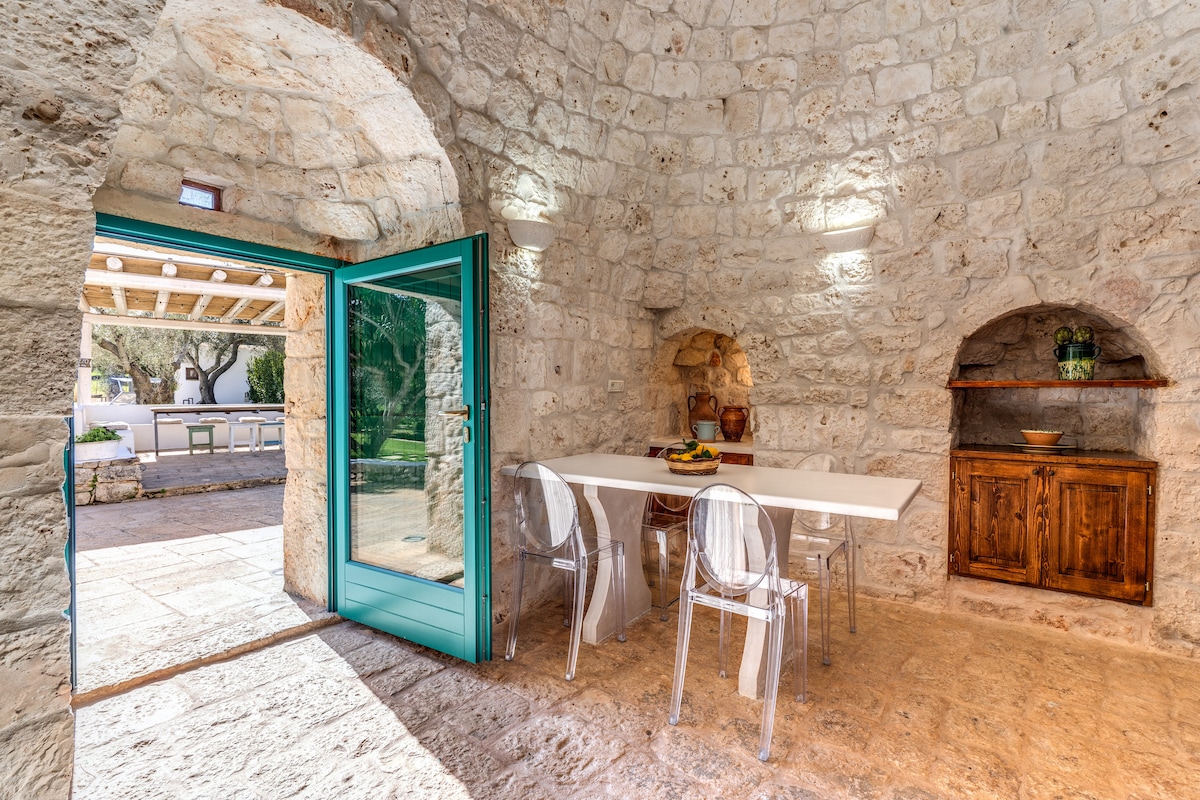 Namestitev z zasebnim neskončnim bazenom za ekskluzivno uporabo in čudovitim razgledom na dolino Itria, ki leži med mestoma Ostuni in Cisternino. Ima 4 neodvisne sobe, vsaka z lastno kopalnico, ki so razporejene med hišo in trulije v zasebnem oljčnem nasadu, le kratek sprehod stran drug od drugega. Idealno za 3–4 pare, skupine prijateljev ali družine. Omogoča vam, da si med počitnicami delite zasebnost in neodvisne prostore, pri tem pa imate vse sobe v isti nepremičnini.