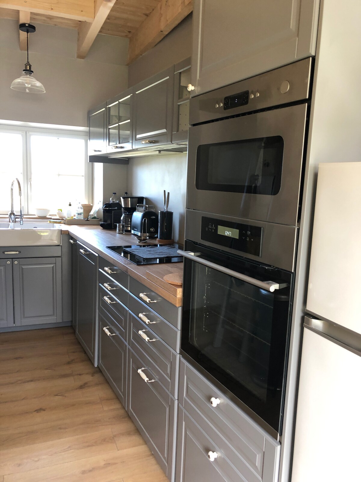 Majhen prostor, poln očarljivosti, sestavljen iz mezzanina z 2 bivališči in 1 dodatno posteljnino, opremljeno z WI-FI-JEM, dnevno sobo z štedilnikom na drva, opremljeno kuhinjo z aparatom za kavo, kuhalnikom, mikrovalovno pečico, tradicionalno pečico, Indukcijskimi krožniki, pralnim strojem in kopalnico, (umivalnik, prha), rjuhe in brisače, z zaprtim vrtom 35 m2, kjer boste našli vrtni salon, sončne postelje in žar.
