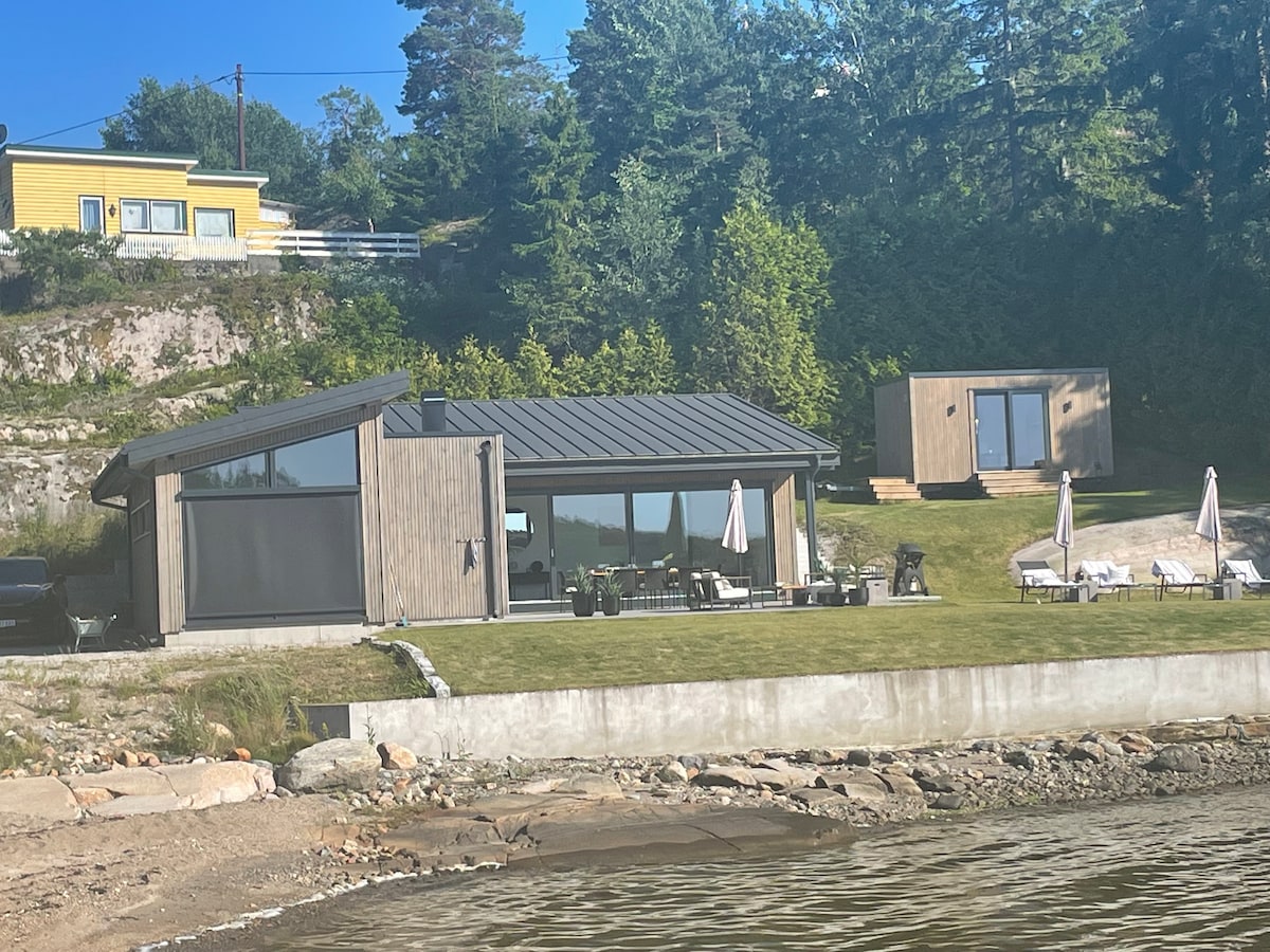 Kuhinja in dnevna soba s 155 cm dnevno posteljo in pogledom na morje. Velika spalnica z zakonsko posteljo velikosti 160 cm. Kuhinja s pečico/indukcijsko kuhalno ploščo, hladilnikom/zamrzovalnikom, posodo in mikrovalovno pečico. Kopalnica s prho, pralnim in sušilnim strojem. Terasa in velika terasa s travo. Parkiranje zunaj. 10 minut hoje do vode s plažami, skalami in pristaniščem za čolne, gozd 1 minuto za hišo. 15 minut vožnje do centra, 10 minut do nakupovalnega središča Nordby. 20 minut do Kosterja z ladjo. Mirno območje.