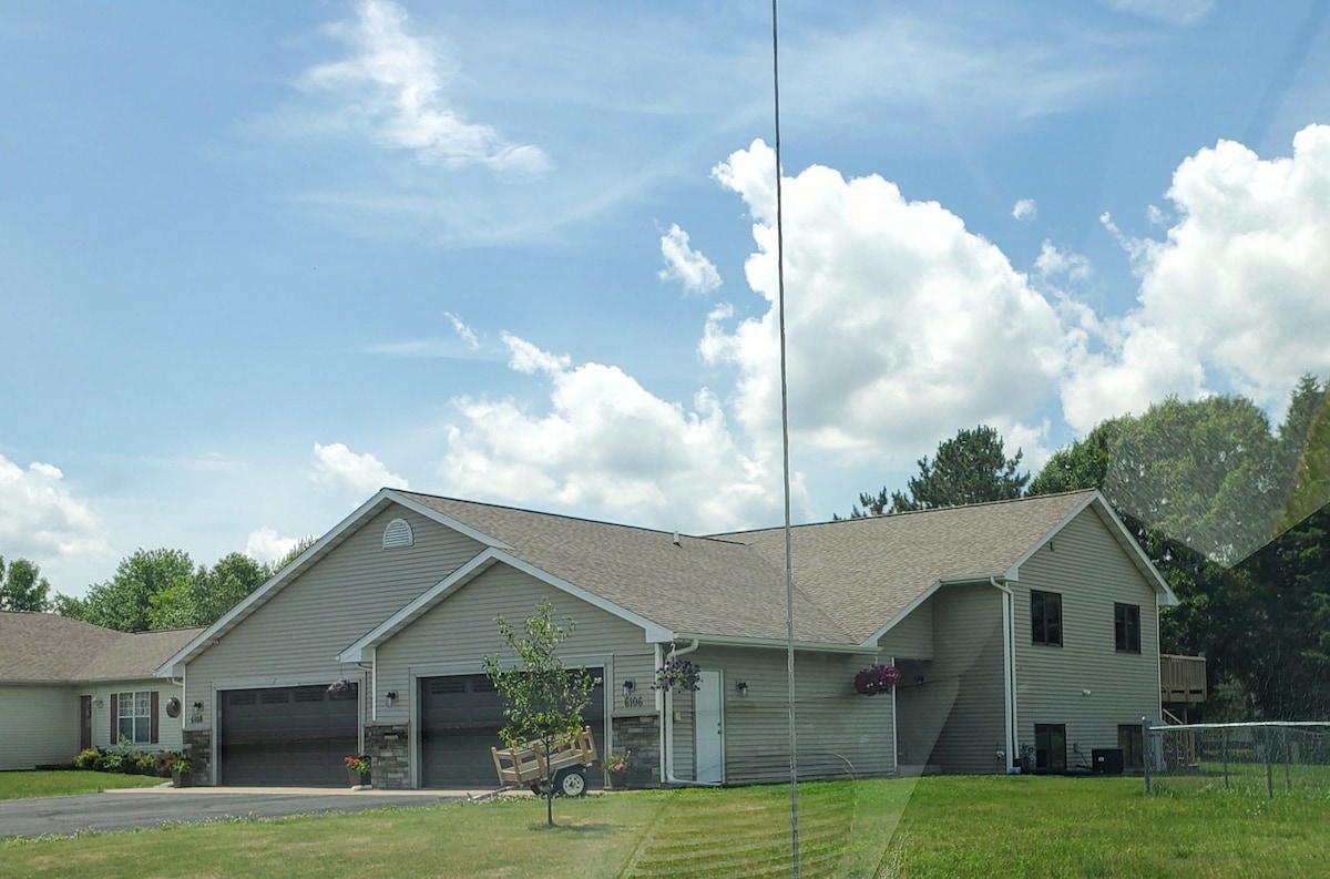 Pozabite na skrbi v tem prostornem in mirnem prostoru. Uživajte v sprehodu do bližnje pivovarne Mosinee in lokalnih restavracij. Pojdite na ribolov na reki Wisconsin, ki je tik čez cesto, ali pa se zapeljite s kajakom. Ali imate otroke, ki se udeležujejo turnirjev v mestu? Šola in drsališče čez cesto. Družite se na terasi in na žaru ter uživajte v mirnem večeru ob ognjišču. V zimskih mesecih je znameniti granitni vrh smučarskega hriba oddaljen le 10 minut, skupaj z 9 milj dolgimi podeželskimi gozdnimi smučarskimi progami.