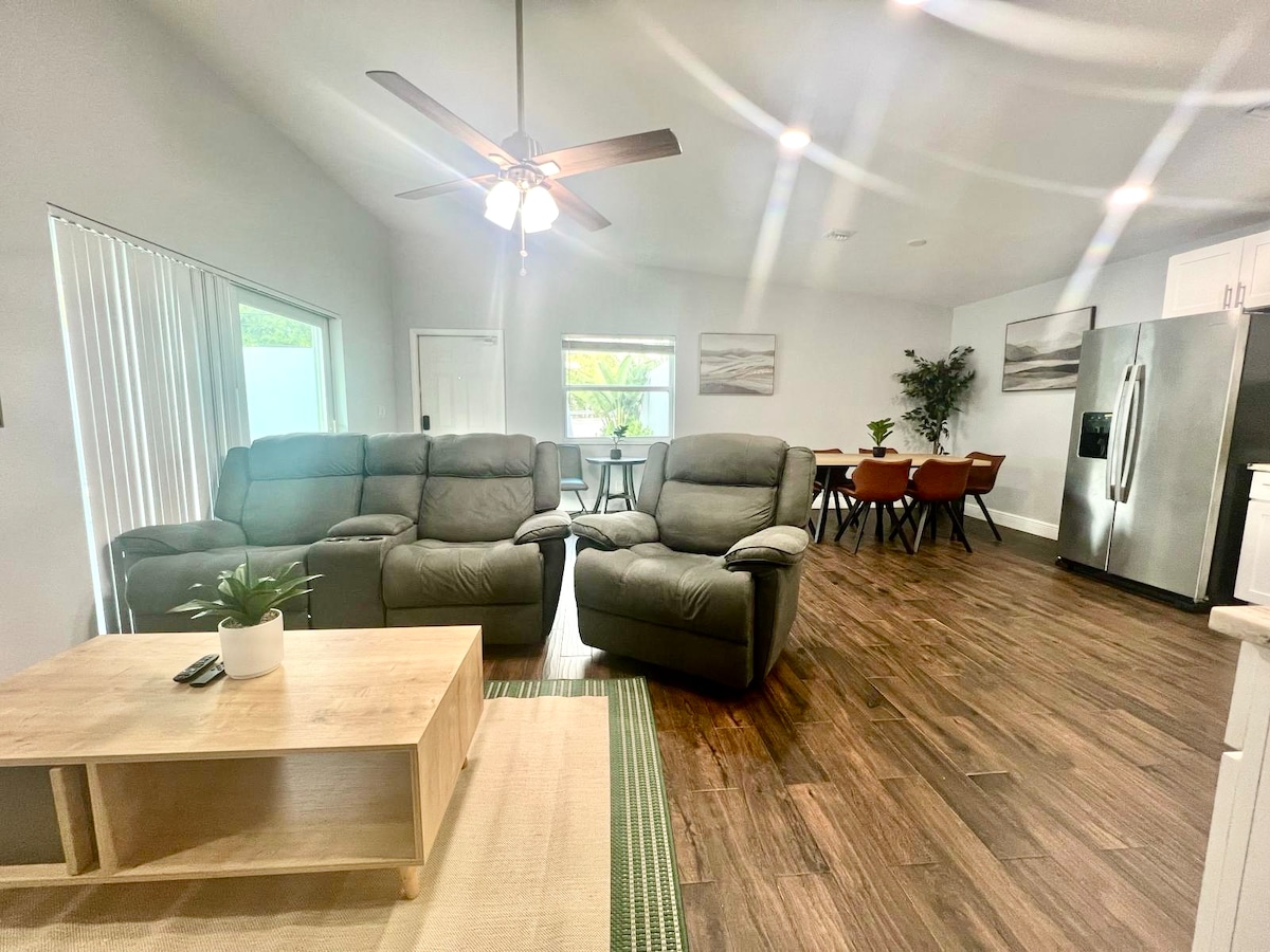 Dobrodošli v našem prostornem in elegantnem prenočišču. Idealen za družine ali skupine - ponuja popolnoma nov in udoben prostor z vsemi osnovnimi potrebščinami. Uživajte v kakovostnih posteljah, televizorjih v vsaki sobi, osnovni opremi za kuhanje in namenskem delovnem prostoru za sproščujoče bivanje. Na voljo imate tudi zelo veliko zasebno teraso, ki jo lahko uporabljate. Hiša je priročno blizu avtoceste, 15 minut do plaže in središča West Palm Beacha.