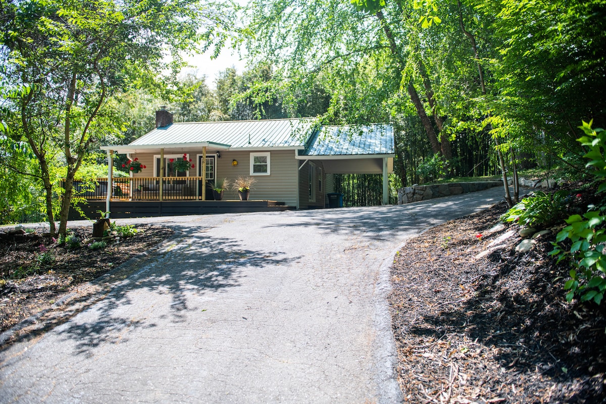 Sprostite se in vdihnite v našem gorskem zdravilišču za pare. Atrium House je zasnovan tako, da je odprt za čudovito gorsko okolico, vendar vam omogoča, da se sprostite v zasebnosti. Naša zunanja terapevtska masažna kad, notranji/zunanji plinski kamin in prostorna prha za dve osebi omogočajo tako miren oddih, da morda ne boste nikoli prišli do bližnjega Ashevilla. Nahajamo se na podeželju, vendar le nekaj več kot 15 minut vožnje od središča Ashevilla, Biltmora, Hendersonvilla, letališča Asheville in številnih pivovarn.