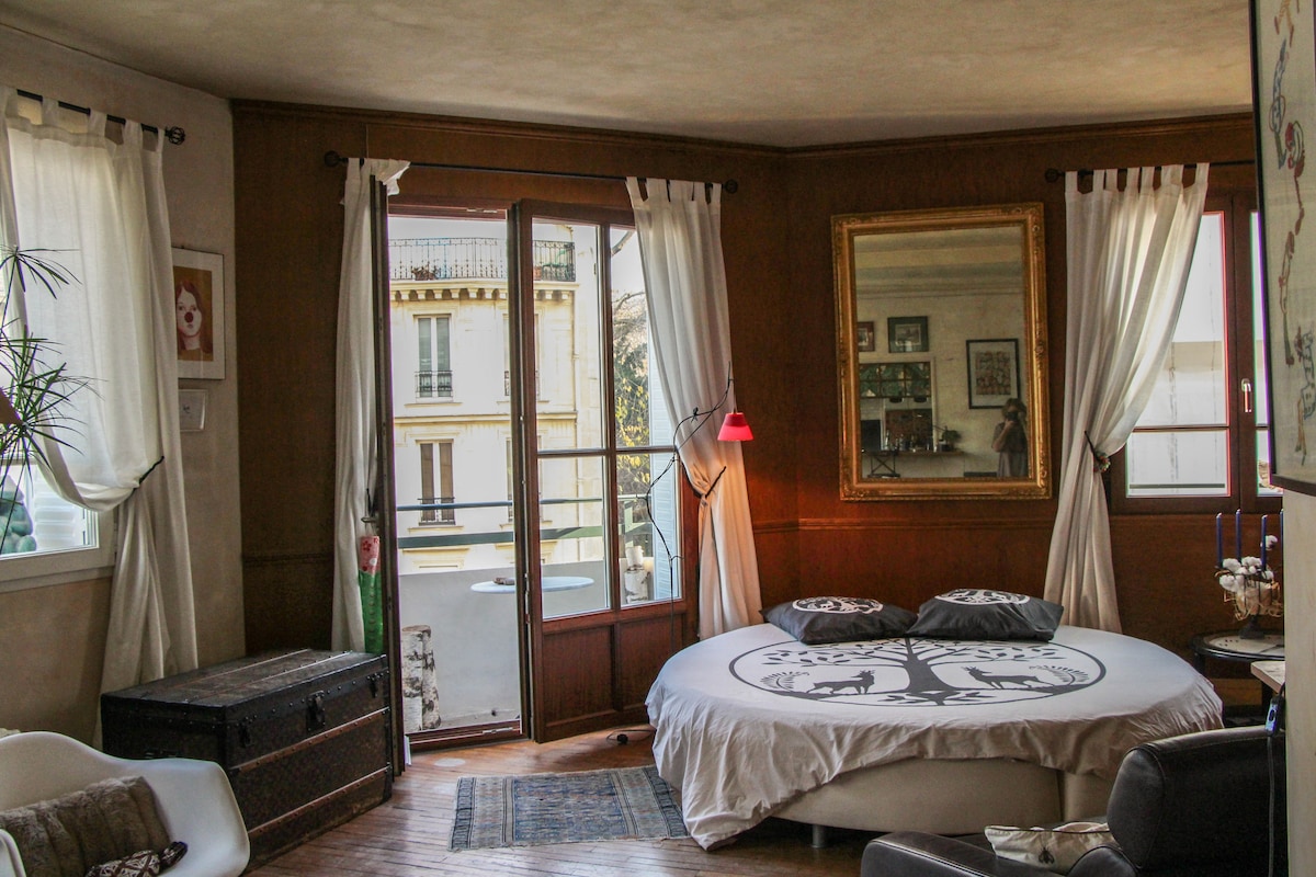 Sončno stanovanje umetnika v najvišjem nadstropju z dvigalom, tiho in polno svetlobe. Idealno za par ali delo na daljavo, s pogledom na pariške strehe, toplo umetniško notranjostjo in mirnim vzdušjem. Nahaja se v osrčju Latinske četrti, le nekaj korakov od Panteona, ulice Rue Mouffetard, parka Jardin des Plantes in reke Sene. Mirno in navdihujoče prenočišče, kjer boste Pariz izkusili kot domačini.