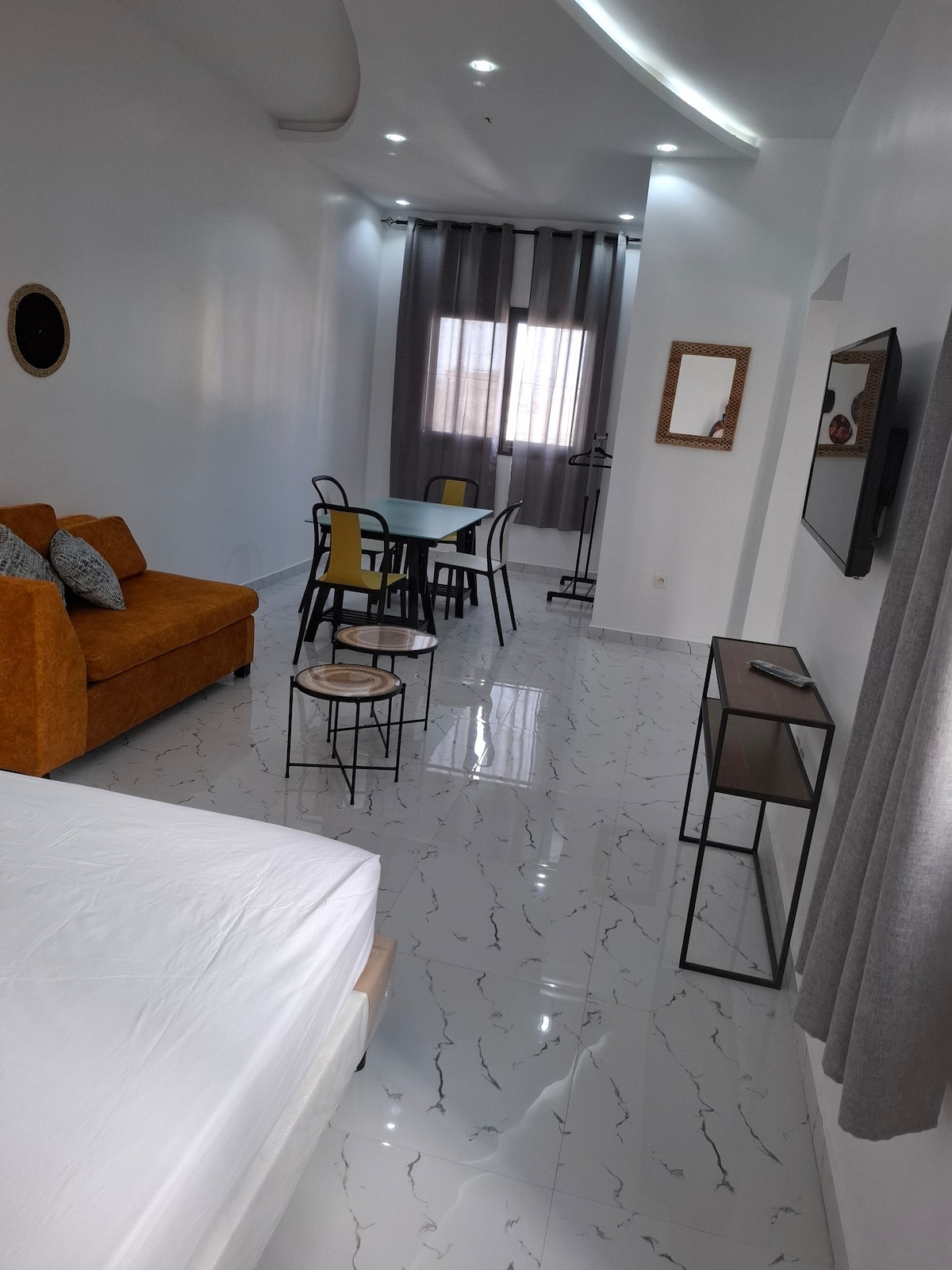 Okusite eleganco tega izjemnega prenočišča v drugem nadstropju. Popolnoma novo garsonjero, ki se nahaja v Cité Apix Tivaouane Peul, na mirni in varni lokaciji. Idealno za strokovnjake, ki so napoteni v Diamniadio, ali popotnike, ki so na poti skozi letališče. ✔️ Klimatska naprava ✔️ Hitra povezava Wi-Fi ✔️ Topla voda Nova in udobna ✔️ posteljnina ✔️ Opremljena kuhinja ✔️ Mirna soseska