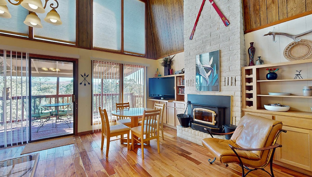 Prebudite se ob pogledu na gorovje Sierra Blanca ob sončnem vzhodu in uživajte v kavi na ogromni terasi, ki obdaja hišo in ponuja razgled na borovce. Ta očarljiva koča s 3 spalnicami in 2 kopalnicama ponuja pravi gorski oddih z občutkom miru na vrhu sveta in osupljivimi razgledi skozi 6-metrsko steno z okni. V bližini so trgovine, restavracije in smučišče, vendar je prenočišče na mirni slepi ulici, ki zagotavlja zasebnost. Ponujajo koče Ruidoso Mountain View. Hišni ljubljenčki so dobrodošli s plačilom pristojbine v višini 35 $. Po opravljeni rezervaciji nam sporočite več o njih.