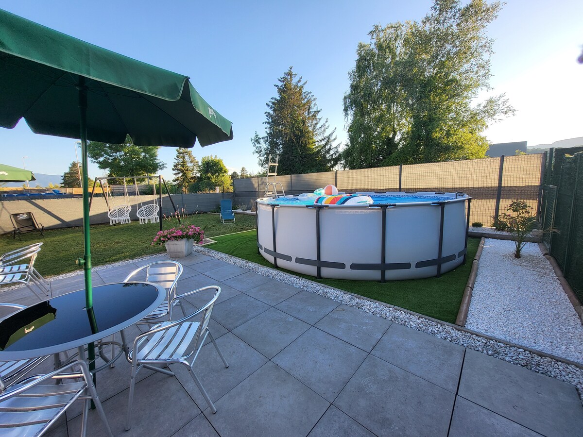 🌿 Zavetišče miru v osrčju Rumillyja - 20 minut od Annecyja Dobrodošli v tem edinstvenem kokonu, ki se nahaja v mirnem predelu sredi Rumillyja. Ne glede na to, ali ste na oddihu za dva, sami ali na službenem potovanju, boste na odlični lokaciji za raziskovanje zakladov tega območja: ✨ jezera Annecy in Le Bourget, ⛷️ smučišča, 🥾 pohodniške poti, 🎉 ali lokalni dogodki skozi vse leto.