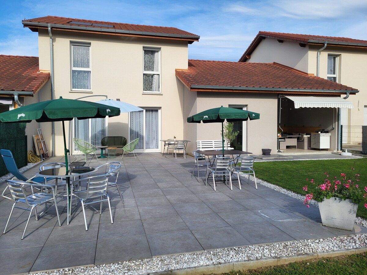 15 minut od jezera Aix les Bains in 15 minut od jezera Annecy, ki se nahaja v mirni in zeleni vasi, svetlo neodvisno stanovanje v hiši. Tu je vse ugodno za sprostitev. 1 spalnica z zakonsko posteljo in otroško posteljo. 1 spalnica z 1 zakonsko posteljo. 1 majhna spalnica z 1 izvlečno posteljo. Otroška postelja in visok stol na voljo. Terasa 15 m2.