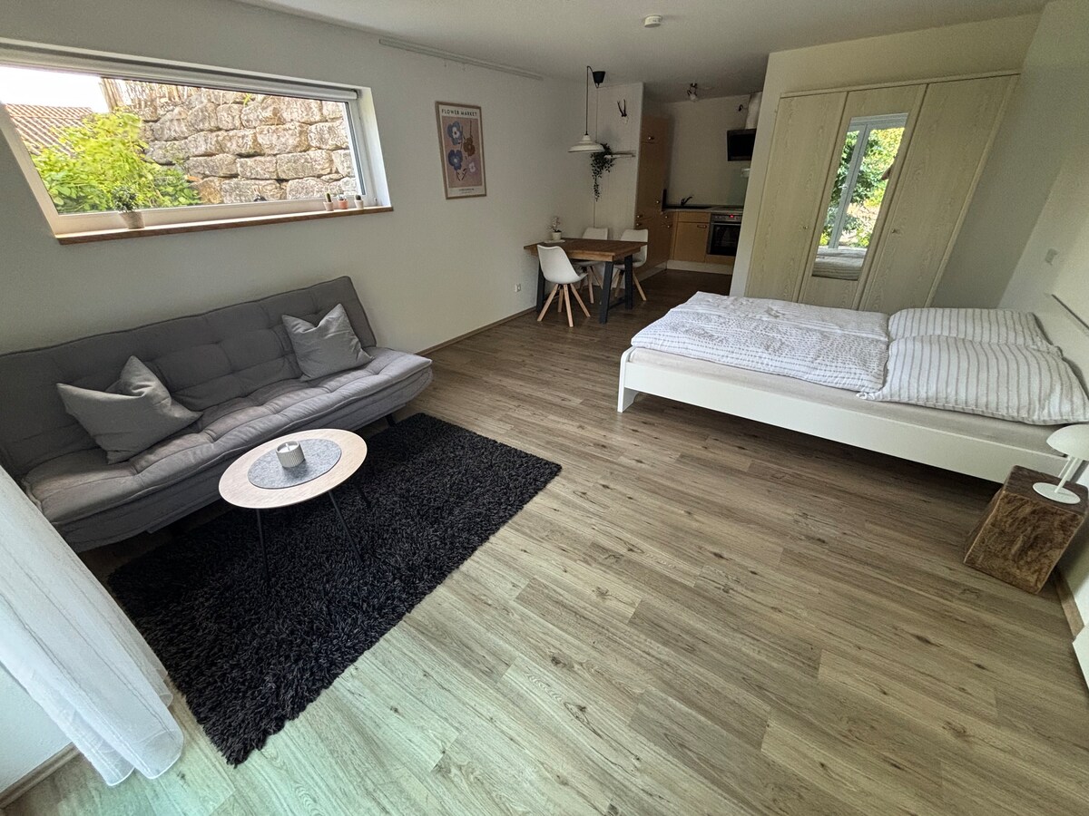 Poseben umik, ki se nahaja v bližini mesta in hkrati sredi narave: to je apartma Junior (brez kuhinje) Kot nalašč za popotnike, ki imajo radi hojo, tek, kolesarjenje, sprostitev na jezeru Constance (20 min.) ali pohodništvo ali smučanje v Alpah (približno 1 uro). Ravensburg (5 km) s 50.000 prebivalci vas vabi, da greste po nakupih in obiščete različne znamenitosti. Zelo priljubljen med otroki je atrakcijski park Ravensburger Spieleland (11 km). Zajtrk lahko rezervirate z doplačilom.