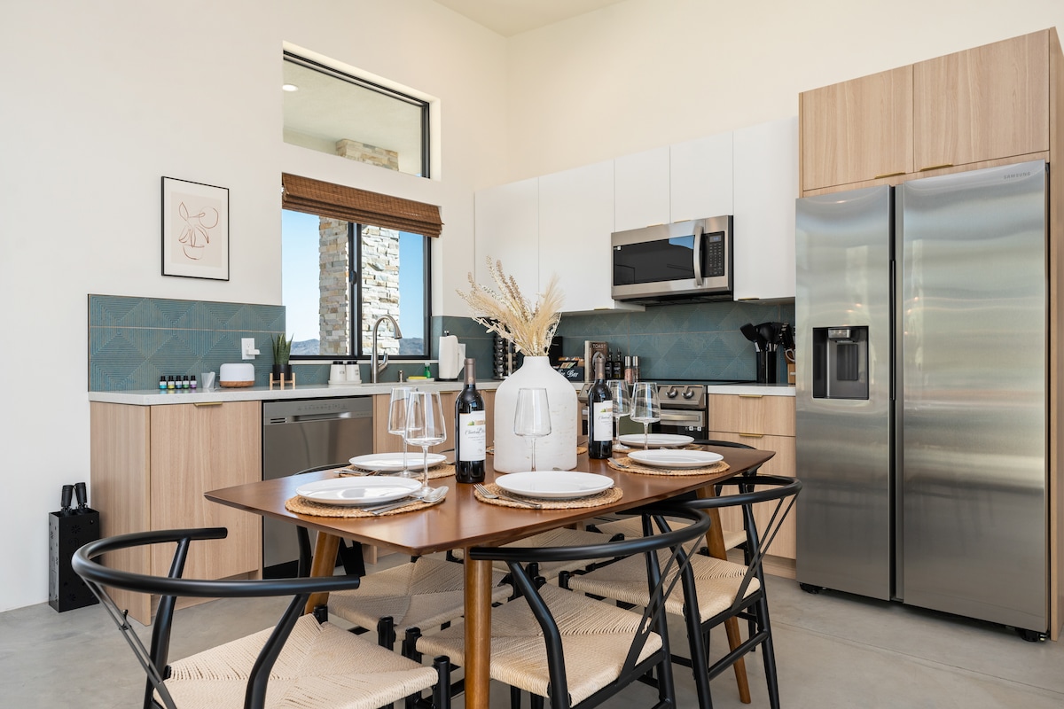 Black Desert House by Homestead Modern is a globally recognized architectural retreat set among boulders in the private enclave of Rock Reach. Designed by Oller & Pejic Architecture, the home pairs bold modern geometry with raw desert surroundings, creating a rare stay defined by stillness, design, and horizon-wide views. From its infinity pool to its immersive glass walls, this is a stay for guests seeking beauty, privacy, and quiet awe.