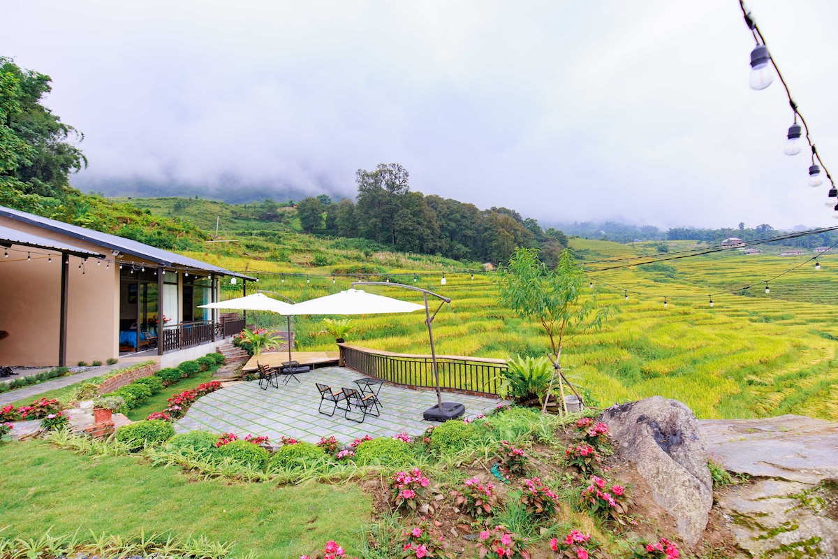 Welcome to our charming bungalow, where you can wake up to one of the most stunning views of terraced rice fields in Sapa. With large glass windows, our cozy room offers an uninterrupted panorama, allowing you to immerse yourself in the beauty of nature. The serene sunrise from your bed will make your stay truly unforgettable. Come and experience the perfect blend of comfort and breathtaking scenery at our hillside retreat!