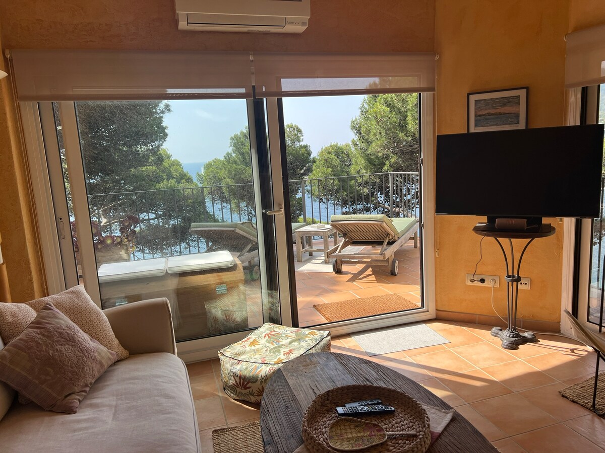 NOVO STANOVANJE NA PLAŽI AIGUABLAVA, 100 m² + velika terasa 2 apartmaja + prostoren salon + kuhinja + jedilnica + veranda. Neprimerljiv pogled na morje in ZASEBEN DOSTOP do plaže – le 3 minute hoje ali 1 minuto vožnje do Aiguablave-Begurja. Pred vami ni nobenih stavb, samo narava in Sredozemsko morje. Klimatska naprava, Wi-Fi, zasebno parkirišče. Zasnoval jo je arhitekt Antoni Bonet in je POPOLNOMA OBNOVLJENA. Aiguablava s turkizno vodo je eden najbolj ekskluzivnih krajev na Costa Bravi. Samo 1 uro in pol od Barcelone.