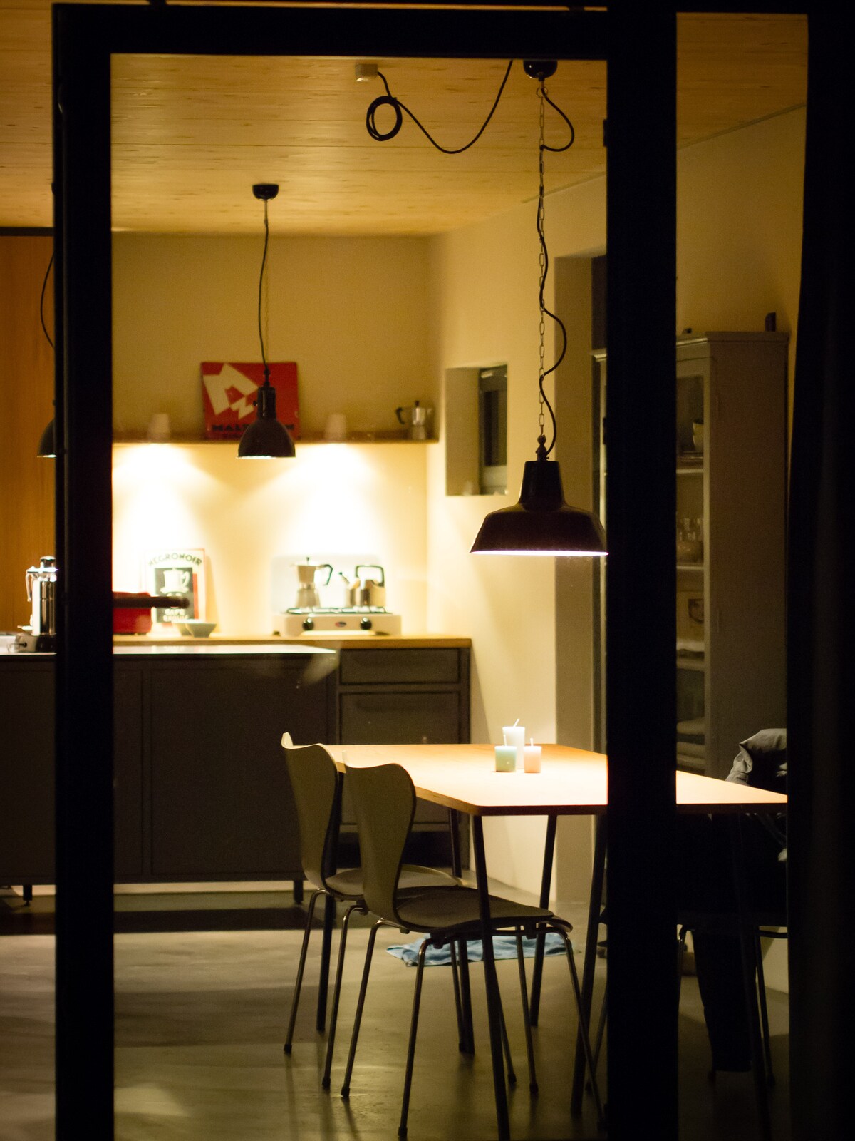 Bivalni prostor se razteza v dveh nadstropjih. V pritličju je dnevni/kuhinjski prostor s štedilnikom na drva, kavčem in leseno mizo ter majhno kuhinjo, ki je opremljena s plinsko kuhalno ploščo in hladilnikom. Bivalni prostor v pritličju se nahaja ob leseni terasi s sedežno garnituro. V spodnjem nadstropju je tudi kopalnica s prho in WC-jem. Prostorna spalnica v zgornjem nadstropju je zlahka dostopna po lesenem stopnišču.