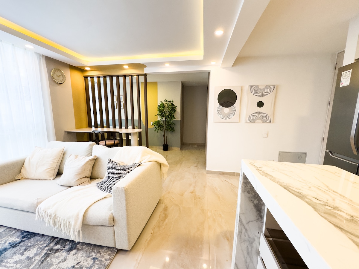 Disfruta de una experiencia inolvidable en este moderno apartaestudio tipo loft en el piso 9 de GZ Tower: * Check-in y Check-out flexible *WiFi 900 Megas *A 1 cuadra de la clínica Iberoamericana y a 3 cuadras del Viva Mall. *1 habitación con cama Queen y aire acondicionado. *Sala con sofá cama y aire acondicionado. * Lavadora-secadora *Gimnasio Smartfit cerca (de pago). *Estacionamiento privado gratuito. *Ubicación ideal: Cerca de centros comerciales, principales clínicas y zonas turísticas.