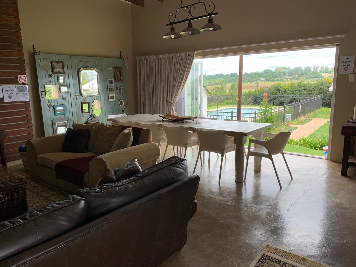 Idealen romantični oddih ali udoben počitniški kotiček za prijatelje. Uživajte v naravi in čudovitih razgledih z majhnimi obiskovalci vseh oblik in velikosti... rooi duikers, mungosi, neverjetno življenje ptic in mirna voda. Poletne noči na terasi ob vašem zasebnem bazenu, hladnejše noči pa se crkljajo ob notranjem kaminu. Na idealni lokaciji za raziskovanje vsega, kar ponuja Lowveld (Kruger Park, božje okno, Pilgrims 's Rest, Sabie in še več) ali pa samo ostanite doma, uživajte v naravi, se izgubite v knjigi in si napolnite baterije