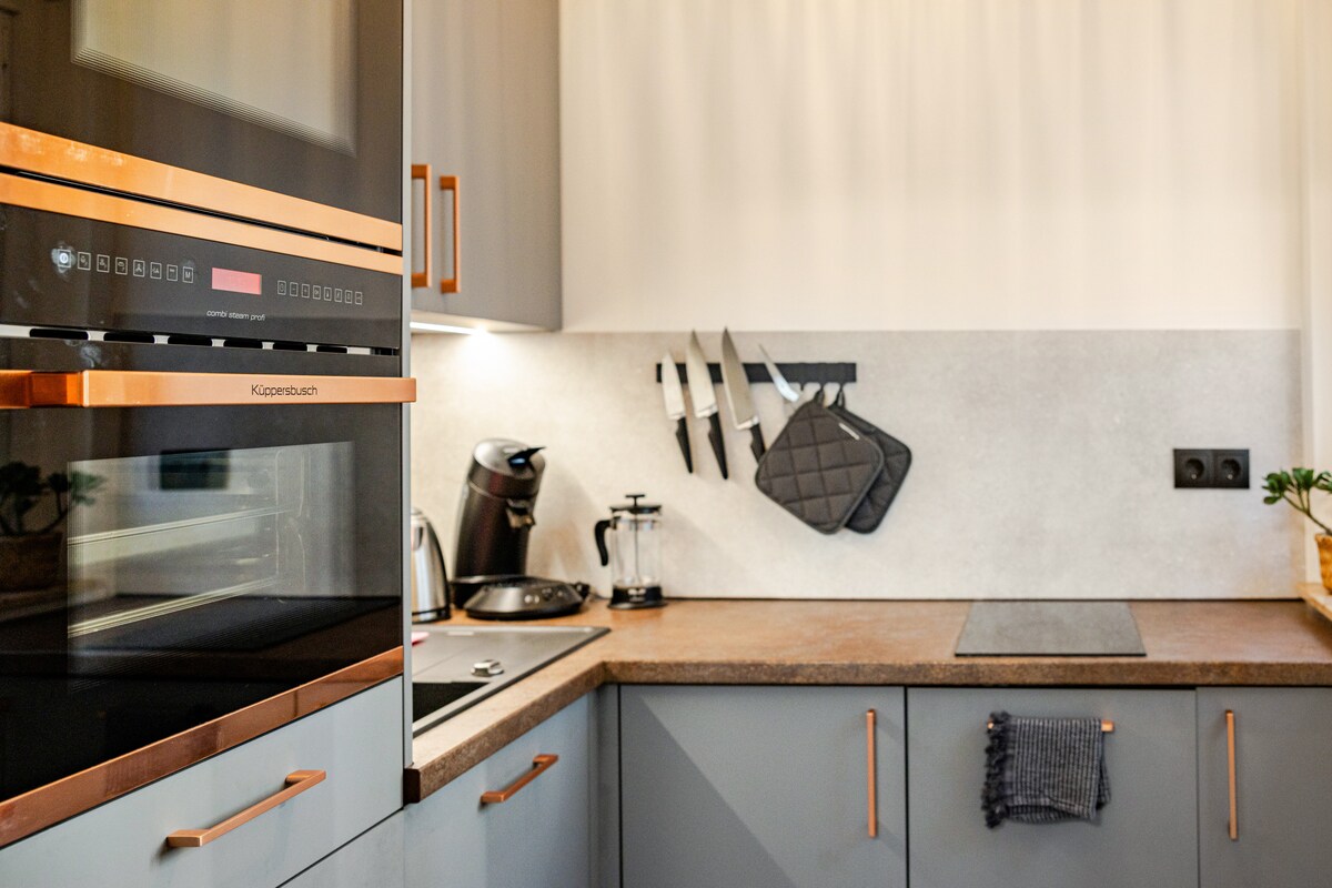 V našem enosobnem stanovanju, poplavljenem s svetlobo, boste našli vse, kar potrebujete za prijetno bivanje v Dresdnu: • kuhinja • Smart TV, vklj. Waipu TV (272 kanalov) • trajnostni aparat za kavo in čaj • Hiter Wi-Fi za domačo pisarno in zabavo • pralni / sušilni stroj • balkon s pogledom na podeželje • garderobna omara • Odlična lokacija v priljubljenem trendovskem okrožju • Odlična povezava z javnim prevozom, vključno z ŽELEZNIŠKO POSTAJO NEUSTADT • v sodobni novi stavbi iz leta 2023 z dvigalom