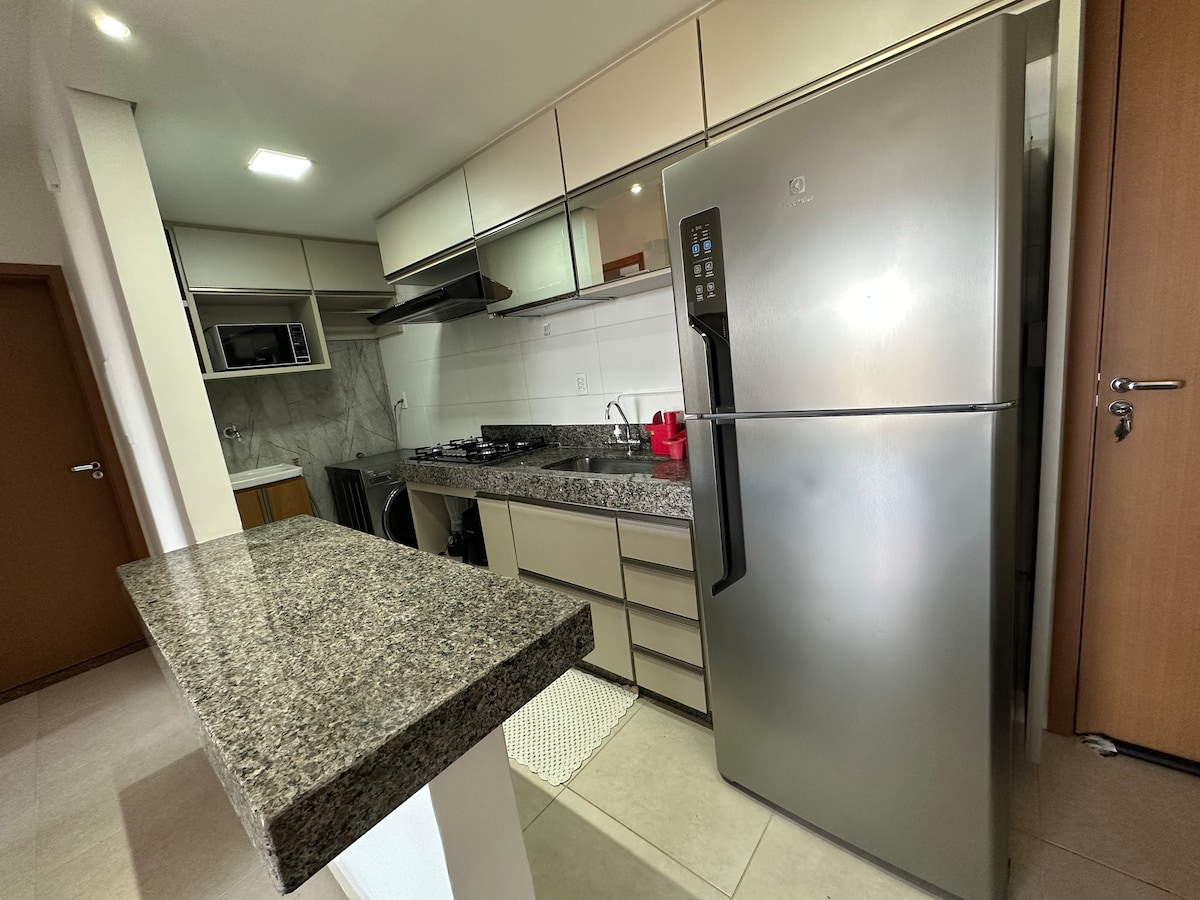🛏️ 4 apartmaji s posteljo in kopalnimi pripomočki ter klimatsko napravo 🚾 2 lavaba, ženski in moški 🏊♂️ Ogrevan bazen z masažno kadjo in razsvetljavo 🏠 Za 10 oseb v posteljah in 3 enojne vzmetnice 🍽️ Kuhinjski pripomočki 🍖 Žar 🍻 Cervejeira 💦 Čistilnik vode 🛜 Brezplačen brezžični internet ⛴️ Condomínio Morada da Fronteira z dostopom do jezu in marine, kioski in zasebne plaže 🚓 Recepcija non stop Igrišče in igrišče za ⚽️ tenis na plaži 🏘️ Stanovanje 2 km od središča mesta