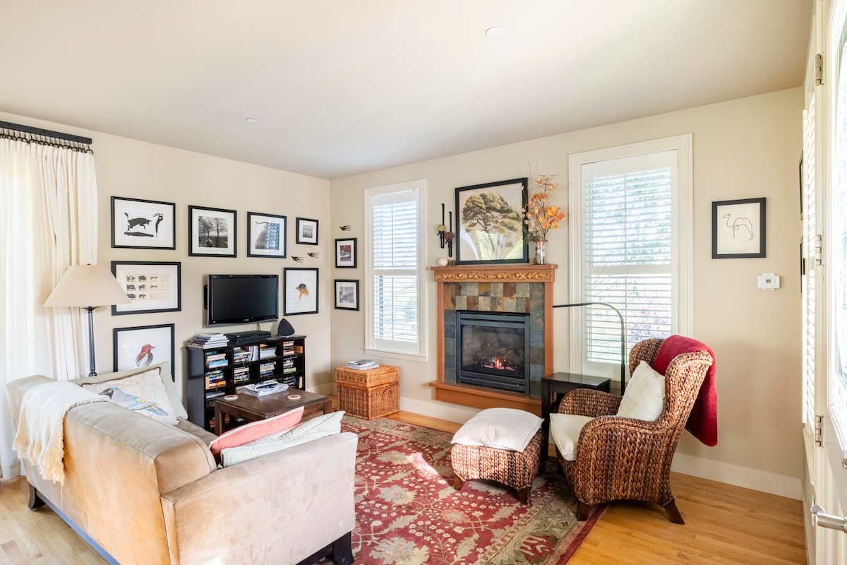 Doživite razkošje v tem elegantnem prenočišču Carriage House (hiša za goste), v središču mesta Ukiah, vašem drugem domu! Vključuje 1 posteljo z zakonsko posteljo (Queen), 1 kopalnico, 1 kavč, udobno dnevno sobo in dobro opremljeno kuhinjo. Uživajte v osupljivi vrtni oazi, se odpravite na kratek sprehod do restavracij in trgovin v središču mesta ali pa do ene najboljših kavarn tik za vogalom. Predmeti za kontinentalni zajtrk so na voljo. DOVOLJENA STA NAJVEČ 2 ODRASLA IN 1 OTROK.