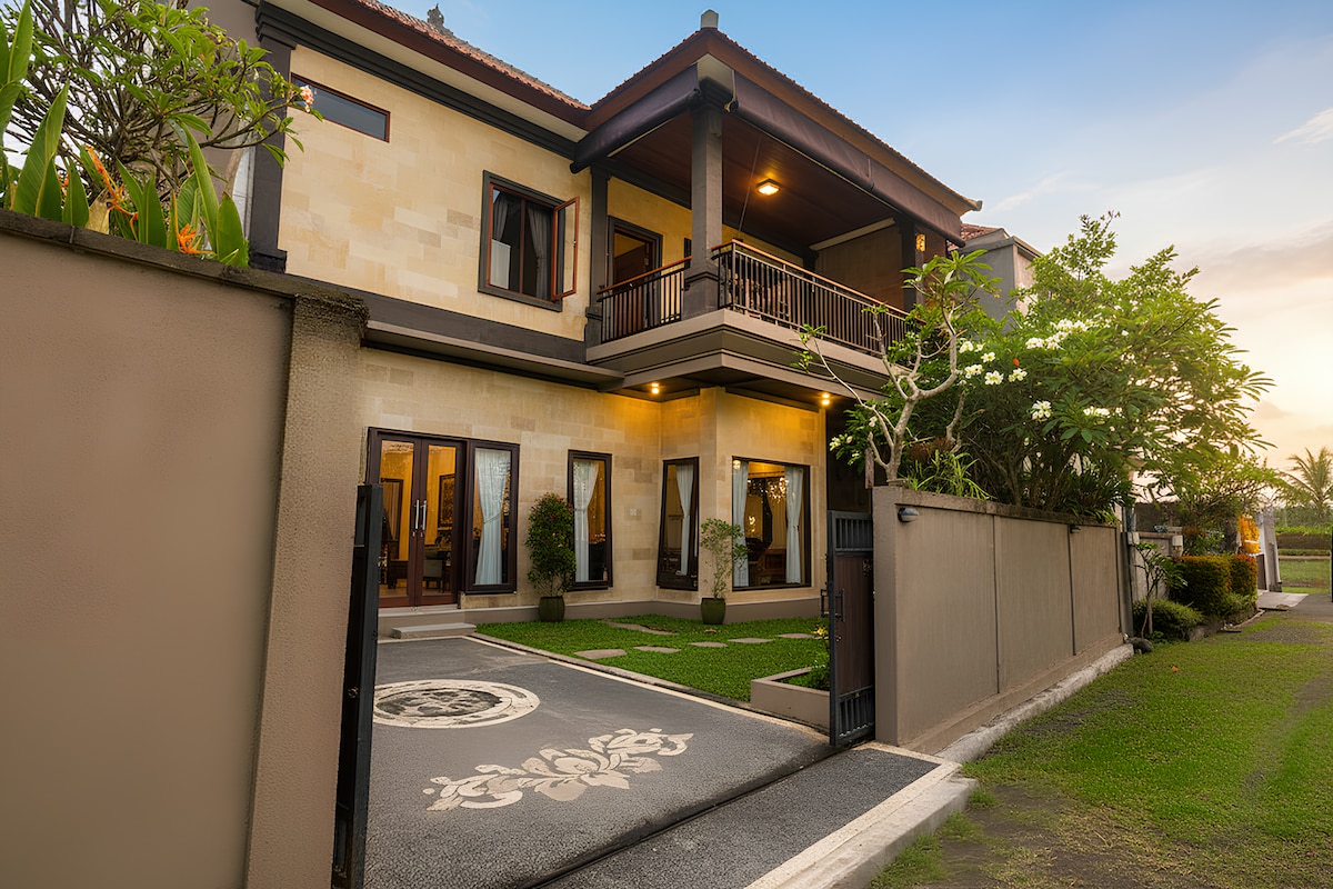 Doživite pristni Bali v našem novem apartmaju (zgrajenem leta 2025), obdani z riževimi polji, ki jih je pod zaščito Unesca, in s pogledom na vulkan Agung. Uživajte v popolnem miru in tišini brez hrupa na ulici – odlično za sprostitev, delo na daljavo ali duhovni oddih. Dostop je po poti skozi naravo. Topla gostiteljska družina vam ponuja vpogled v vsakdanje življenje na Baliju – vključeni so kultura, kulinarika in slovesnosti.