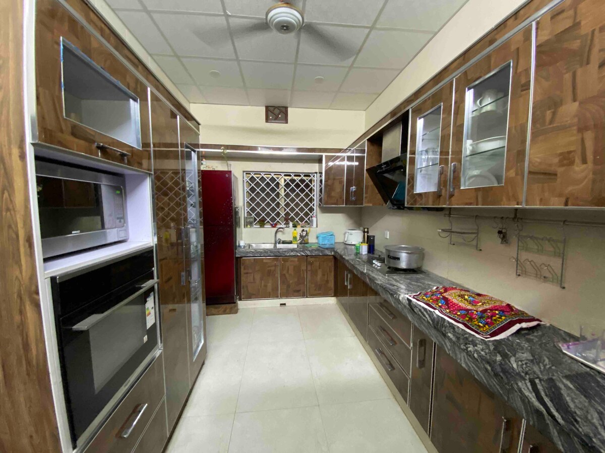 »Topla pakistanska dobrodošlica: udoben dom 🌟 Pobegnite v ta očarljivi pakistanski dom, ki je kot nalašč za sprostitev in potopitev v kulturo. Naša hiša ponuja: – Prostorna spalnica z vzorčasto posteljnino in prostorom za sedenje - Elegantna jedilnica s klimatsko napravo - Sodobna kopalnica s prho - Funkcionalna kuhinja s hladilnikom in mikrovalovno pečico Doživite pakistansko gostoljubje v najinem udobnem prenočišču. Idealno za popotnike, ki iščejo udobje in pristnost.