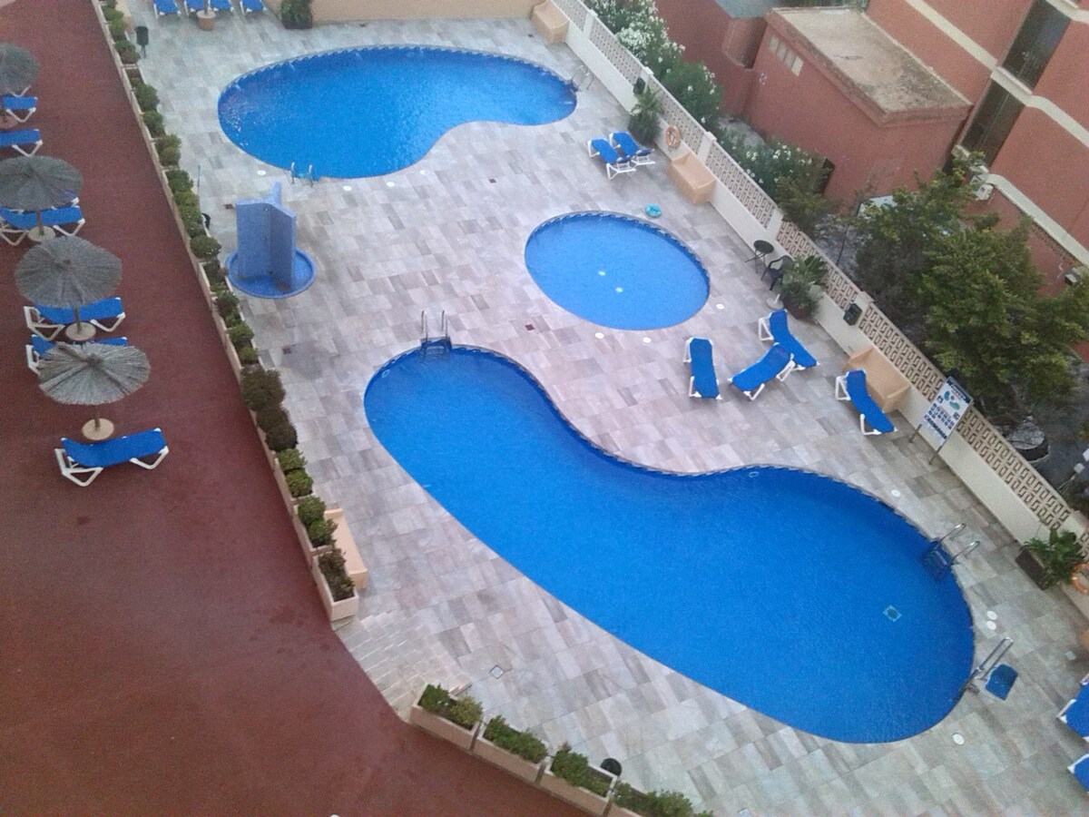 Acogedor apartamento con piscina, solarium, jardín