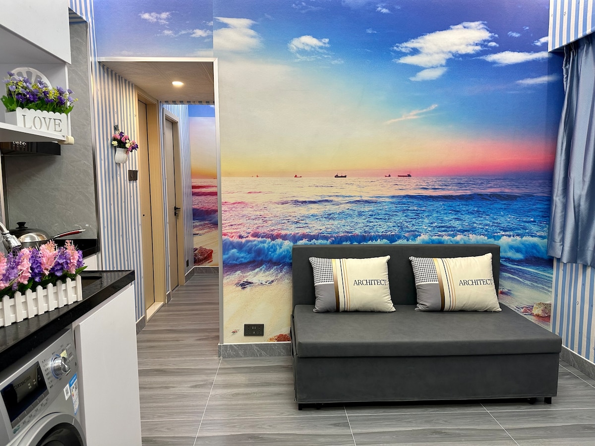 Sodobno stanovanje s pogledom na morje v trendovskem Kennedy Townu — le 15 minut od centra. Prostorna 1 spalnica s polno kuhinjo (pečica, pomivalni stroj, pralni/sušilni stroj) in redko zasebno teraso, ki je kot nalašč za večerje ob sončnem zahodu in ognjemet v Disneylandu. Vse sobe imajo osupljiv razgled na morje. 3 minute hoje do MTR, 1 min do tramvaja, stopnice od tekaške poti ob pristanišču in 10 minut hoje do pohodniške poti na otoku Hong Kong. Mirna in varna soseska z odličnimi kavarnami in restavracijami. Popolno izhodišče za raziskovanje Hongkonga.