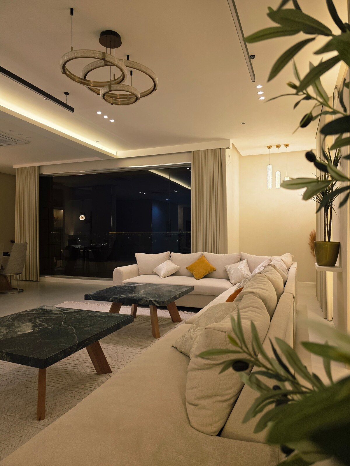 Welcome to your elegant getaway! This luxury 1-bedroom apartment offers a perfect blend of modern comfort and sophisticated design. Thoughtfully furnished with stylish interiors, high-end finishes, and warm ambient lighting, this space is designed for both relaxation and productivity.