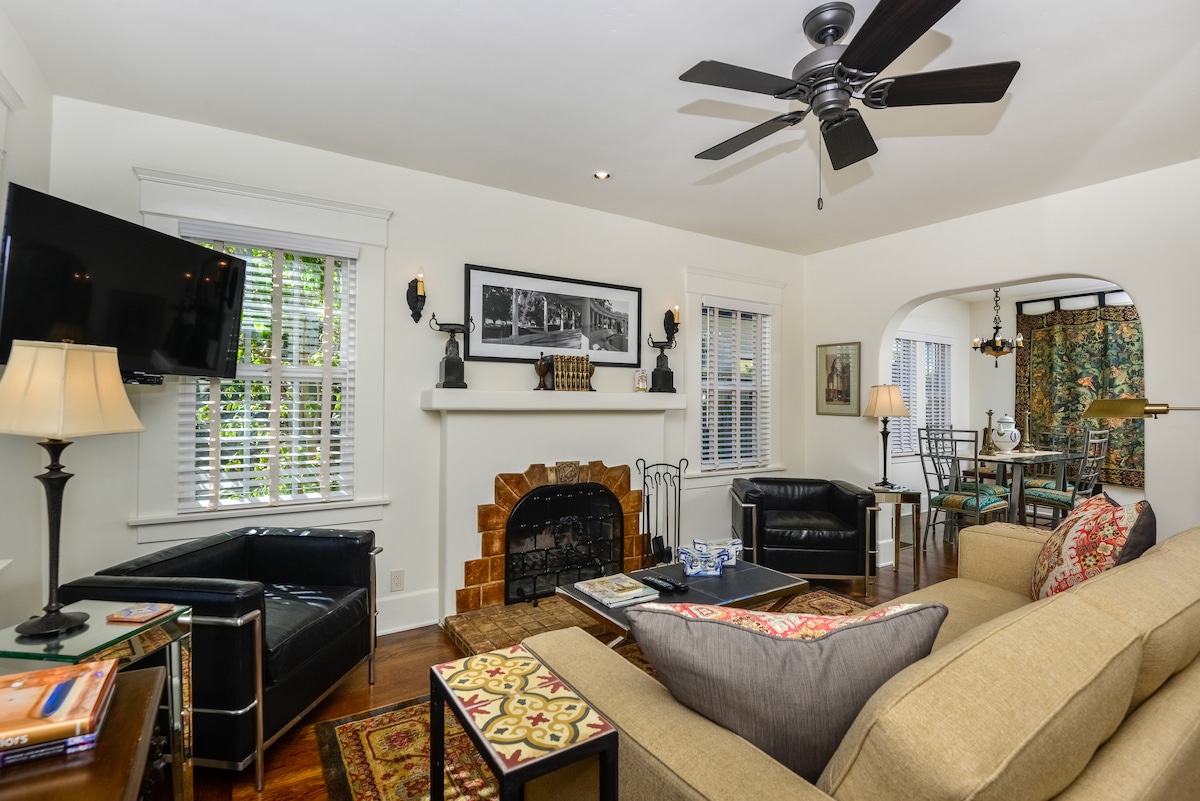 Beautiful bright, centrally located spacious studio unit. 2 Beach Cruisers come with Unit. Smoking/420 allowed on private patio which overlooks our little zen garden. Spa like shower. Easily find safe street parking right in front of property. Fireplace use for Winter, AC for Summer. Hop on the beach cruisers head to the beach 1.3 miles away or the great bars of PB. Pillow Top Luxury Mattress. 55 inch Sony TV w Apple TV. Snacks, Water, Coffee. Beach Towels, cooler and beach chairs provided.