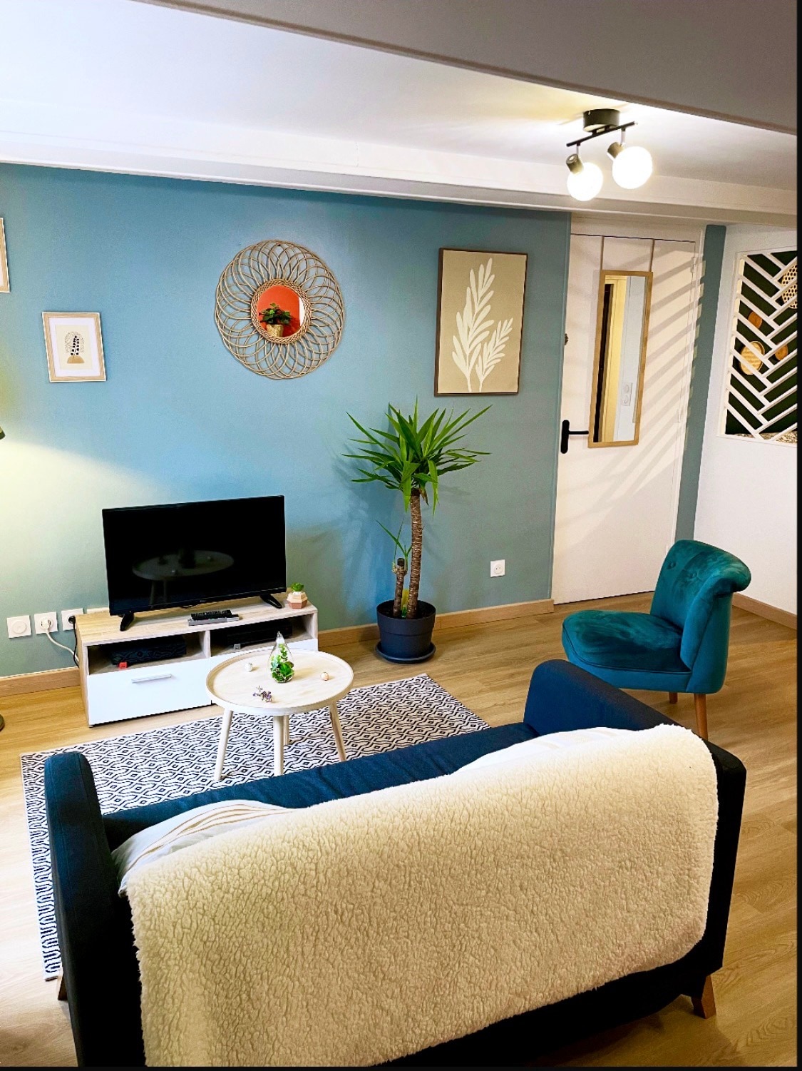 Appartement F1 de 21 m², dans une petite copropriété, comprenant une pièce de vie : Kitchenette TV connectée 100 cm Bureau Canapé 2 places Micro-ondes Bouilloire Table repas pour 2 personnes 1 chambre avec literie 140*190 Moustiquaire Volet roulant solaire 1 salle d'eau avec douche Situation idéale avec la sortie numéro 6 d'autoroute A39 L'eurovelo 6 à proximité Place de parking à l'intérieur d'une cour privative