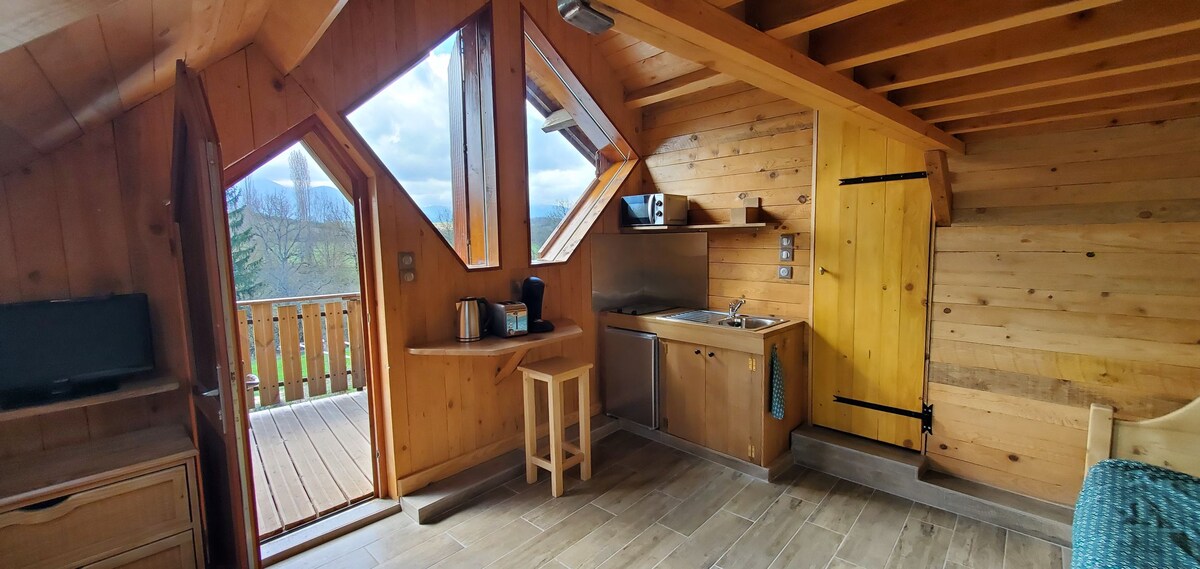 Hiška na deželi v slogu koče. Neodvisen vhod po stopnicah, nasproti zelenjavnega vrta Prenočišče z leseno dekoracijo Dnevna soba 15 m2 z 2x90 pomožnim ležiščem,kopalnico,vmesno posteljo 140. Terasa s pogledom na Obiou in Gd Ferrand. Medetaža ni namenjena otrokom,z rezkalno lestvijo in višino pod pobočjem 1,30 m. Okolju prijazno čiščenje,posteljnina in brisače so na voljo. Dostop do igrišča 2 km za moške, vse trgovine, poletni bazen, tržnice. V bližini himalajskih sprehajalnih poti, jezera Monteynard, žive zemlje,pohodništva,kolesarjenja, hoje,jadralnega padalstva