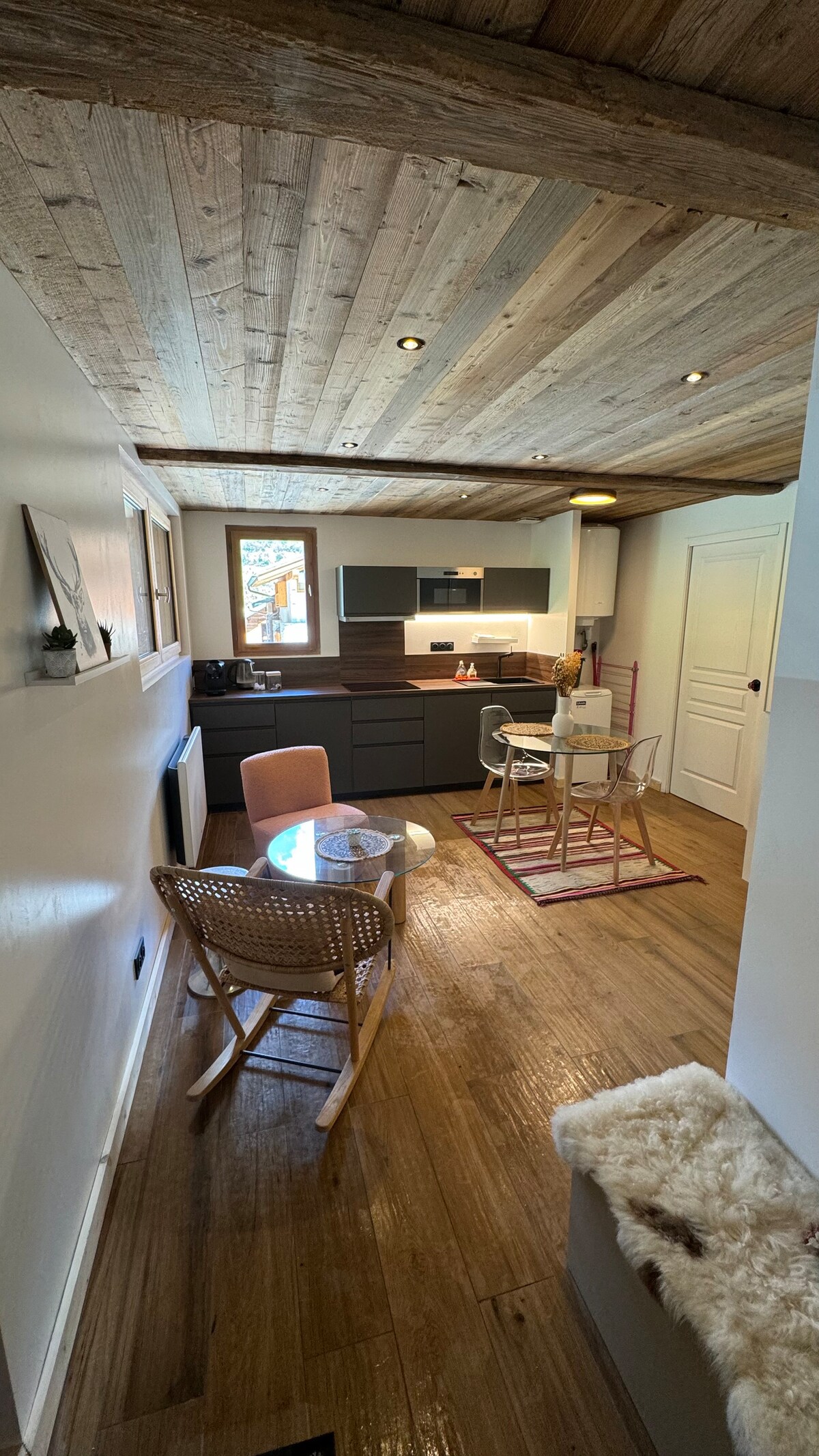 Očarljiva popolnoma nova hiša. 30 m2 za 2 osebi v tipični in mirni vasici Courchevel. Courchevel Le Praz 8 min z avtomobilom in brezplačnim prevozom. (1. dostop do gondole smučanje / gorsko kolo / pohod) Od namestitve: odhod gorskega kolesarjenja/ pohodniške poti, plezalna stena. Plavalna straža ob jezeru, Accrobranche 3 minute stran (Bozel) Vaši hišni ljubljenčki bodo imeli prostor. Žar, ležalniki na vrtu. Zaselka je osrednja točka, ki je od Bozela in Parc de la Vanoise oddaljena 4 minute.