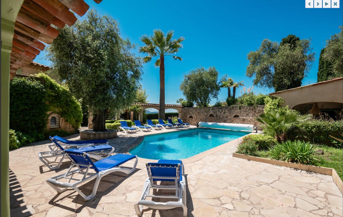 Petit STUDIO très bien équipée avec entrée et parking privé dans une grande Propriété avec piscine et jacuzzi chauffés du 10 avril au 30 octobre . La piscine extérieur et jacuzzi ainsi que le jardin sont partagés mais assez grand pour profiter chacun son espace de tranquillité . Je vis dans la bastide principale . Un Havre de Paix entouré d oliviers centenaires . A 35 minutes de l aéroport de Nice et divers villages provençaux et 14km de Cannes . Tele grand écran /abonnement Netflix