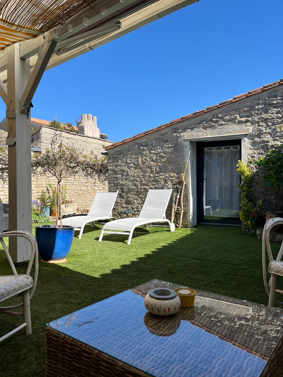 Bienvenue à Ars-en-Ré ! Cette Maison est tout juste rénovée, située en plein cœur du village d'Ars en Ré, entre le port, les commerces, la plage (La Grange) et proche des pistes cyclables. Elle est idéalement située sur une charmante cour privative complètement fermée (40 m²) avec une vue sur le clocher du village. Plusieurs parkings sont disponibles gratuitement à deux pas de la maison. Au plaisir de vous recevoir !