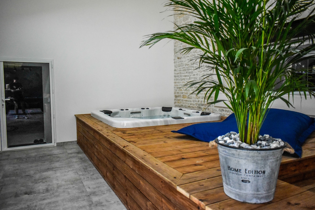 Dobrodošli v našem čudovito obnovljenem tradicionalnem pigeonnier gîte iz 19. stoletja v osrčju regije Grande Champagne Cognac. Previdno prenovljena, da nudi prostorno odprto postavitev s klimatsko napravo in gorilnikom na pelete, ki je primerna za vse letne čase. Vsaka podrobnost, ki je zasnovana za vaše največje udobje, je bila zasnovana tako, da zagotavlja nepozabno bivanje, od sodobne opreme do očarljivih rustikalnih detajlov. Idealno za posebna praznovanja ali pomlajevalni oddih. Najboljši oddih za leto 2026.
