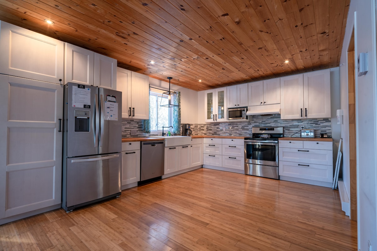 For your vacations choose the Chalet Horizon, an Eden in nature with a view of the mountains ♥ You will appreciate the chalet thanks to: ✷ Semi-private beach 5 minutes away ✷ Large private land, totally surrounded in pure nature ✷ Large bright windows with a view of the horizon ✷ Luxurious and comfortable spaces ✷ Spa open all year round ✷ Terrace equipped with a BBQ and gas fireplace ✷ Smart TV with speakers ✷ Indoor cozy gas fireplace ✷ Foosball table ✷ Wine bar