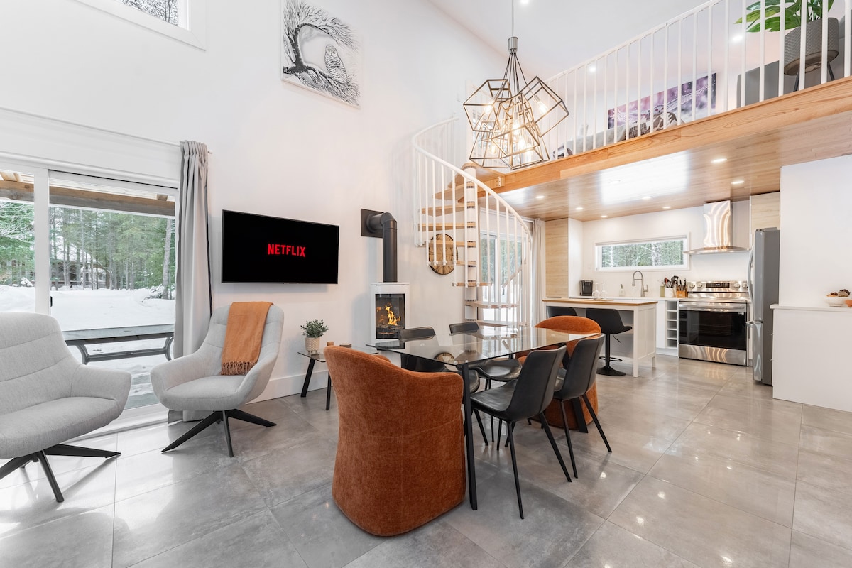 »Chalet Le Boisé« 1 uro od Montreala! Majhen planinski dom se nahaja v gozdu za 4-6 oseb. Živite cocooning duh z masažno kadjo, kremplji in notranjimi/zunanjimi kamini. Osupljiv razgled na jezero. Hitra povezava Wi-Fi za združevanje dela in sprostitve. Kot nalašč za družine, pare in oddaljene delavce, ki iščejo pobeg. Vaše zatočišče miru vas čaka! opomba: pogled na jezero, brez dostopa do jezera. Spoštujte sosesko 🙂
