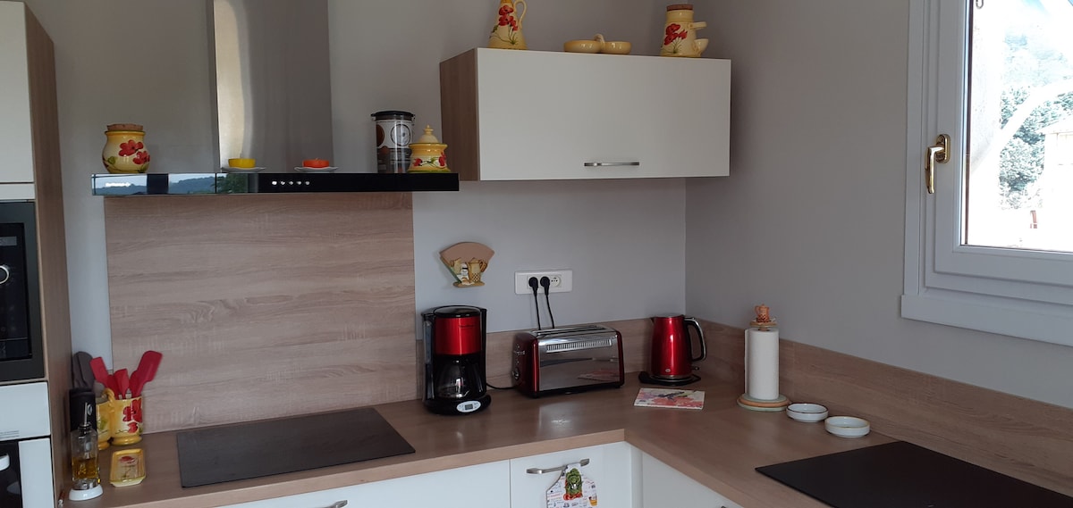 Maison en Provence(Vaucluse),sur deux niveaux ,située sur un terrain arboré et clos de 2500m. Le logement proposé est à l'étage,l'accès est indépendant et se fait par la terrasse (coté Sud). Le logement comprend 2 chambres,salle de bain,WC indépendant,cuisine,salle à manger et salon(Télévision TNT- WIFI) et accès piscine. Proche de villes à découvrir (Orange,Vaîson la Romaine,Avignon,Nîmes)ou aux balades en campagne(Drome provencale,Luberon,Mont-Ventoux,Gorges de l'Ardèche) en voiture ou à vélo