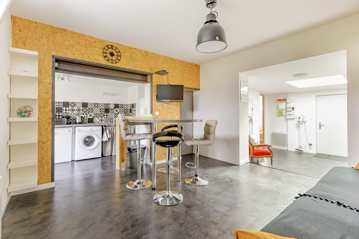 Studio rénové et lumineux, aménagé pour 1 à 2 voyageurs dans un cadre calme et confortable. Idéal pour un week-end en amoureux, un séjour professionnel ou étudiant, à proximité de Rouen, des écoles de Saint-Étienne-du-Rouvray et des centres de formation SNCF Quatre Mare et Promotrans. ⭐ Superhôte expérimenté avec excellente note, ce cocon invite à la détente et au bien-être. 🌿 Profitez d’un jardinet calme avec salon de jardin d’une arrivée autonome et d’un parking gratuit dans la rue.