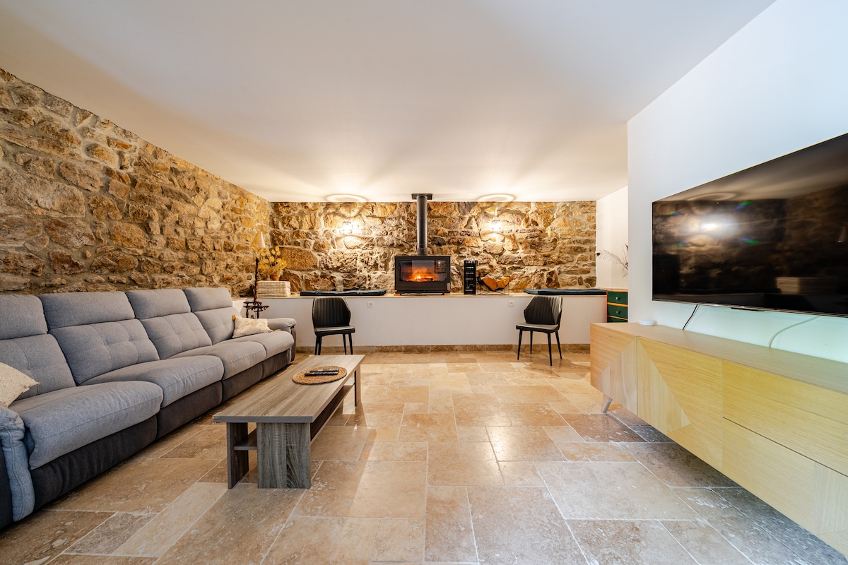 Ancien moulin à huile devenu maison d’habitation à l’entrée du village. Maison indépendante avec cour fermée, terrasse de 38 m² et jardin abrité de 40 m² avec salon de jardin, chaises longues et douche solaire. Au RDC (clim), cuisine ouverte sur séjour et terrasse, salon et WC. Au 1er étage, 2 chambres avec grand dressing et ventilateurs ainsi qu’une SDB (douche italienne et baignoire 150) + WC. Les combles (clim) rénovées offre un grand espace avec 2 lits simples/ou un 180.