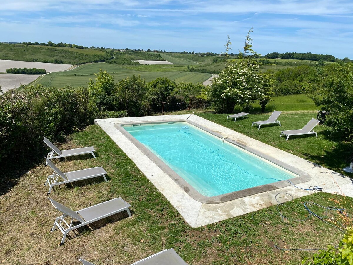 Mirna 2-sobna hiška na deželi, bazen, vinogradi, 20 min
