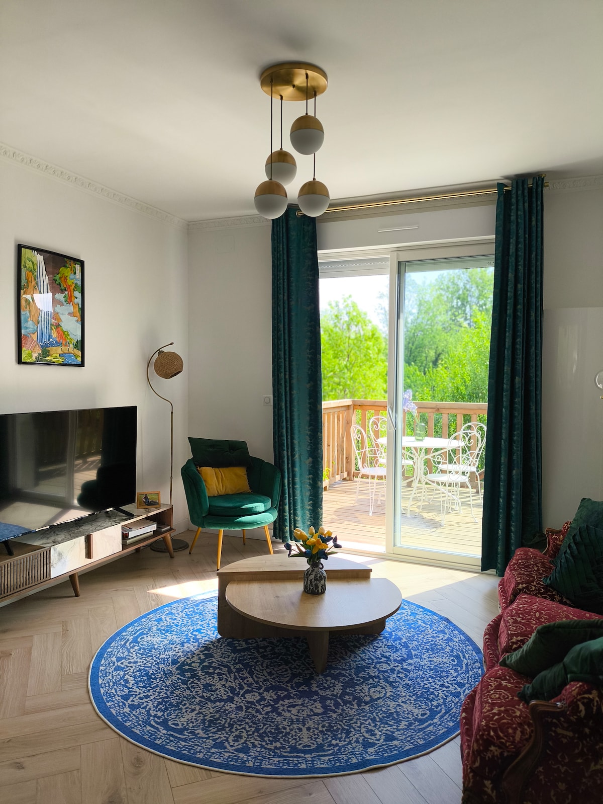 Charming loft/duplex (120 m2) in an old renovated farmhouse in the heart of Périgord-Dordogne. Settled on the top of a quite hill, surrounded by 10 ha with orchard, vegetable garden, meadows and woods overlooking the valley and village. Private outdoor areas. Wood heating. Saltwater overflow swimming pool (70 m2). High band internet. 30mn/Bergerac vineyards, 1hour/prehistoric sites (Lascaux). Easy access (10mn/highway, 1h/Bordeaux airport). Artist studio on request. Winter long term welcomed.