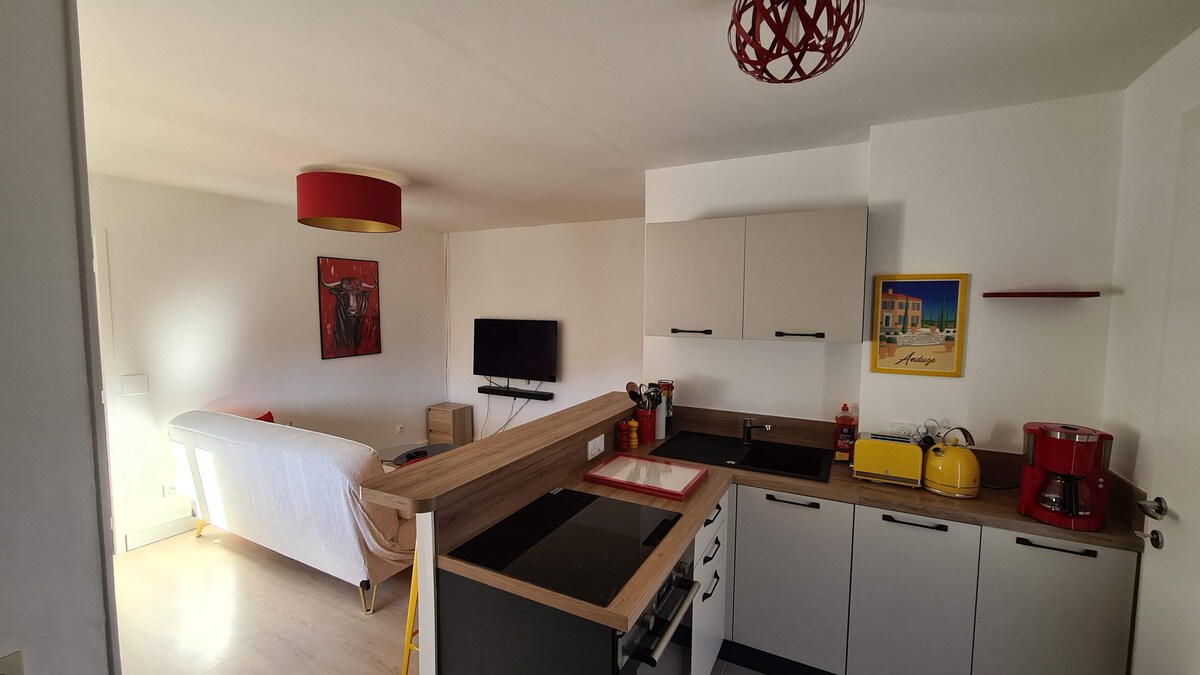 Feel@Home Nemausus®️ vam ponuja to razkošno samostojno nastanitev na ⭐️⭐️⭐️⭐️ obrobju Nimesa (7 min). Sestavljen je iz spalnice s posteljninoBultex️ ® (160/200), dnevne sobe, odprte za popolnoma opremljeno kuhinjo, in kopalnice s kadjo. Možnost kina je bila izbrana z xxl zaslonom (75inches) 4k in storitvijo Netflix za pretočno predvajanje.🎥🎞🍿 Na voljo je tudi zasebni vrt velikosti 160 m2 in zasebno parkirno mesto.🅿️