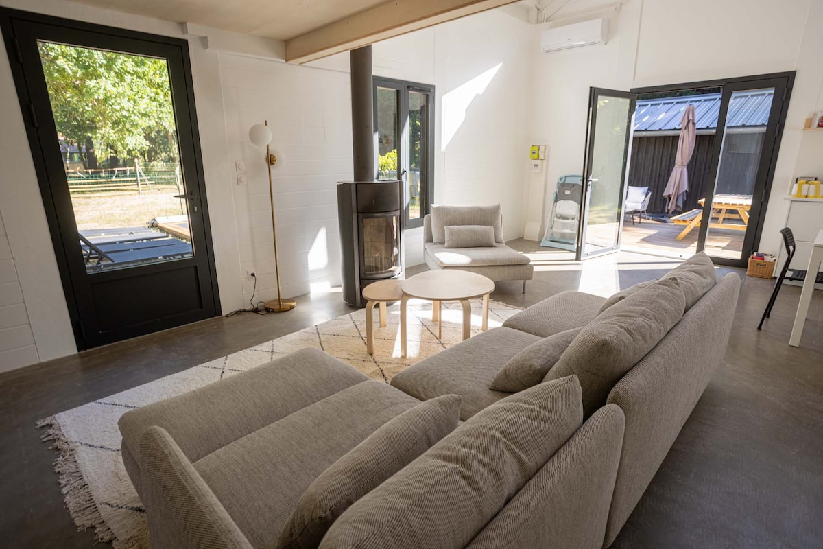 Bienvenue dans notre Lodge , votre coin détente au bord de la rivière ! Jacuzzi chauffé, bassin froid, ponton privé, paddle, canoë, vélos et cannes à pêche. Jardin, terrasse, brasero, barbecue et transats pour profiter des couchers de soleil. Logement tout équipé : Wi-Fi, Netflix, cuisine complète, salle de bain et lave-linge. Idéal pour se ressourcer en famille ou entre amis. Vous pourrez également observer la faune locale, des hérons, cormorans et profiter pleinement du calme environnant
