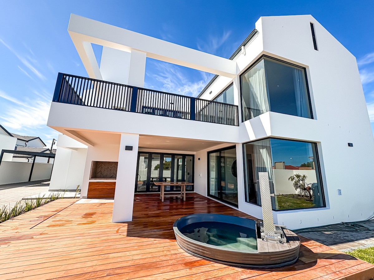 Kick back and relax in this recently completed calm, stylish space. BELLA la Vita are purpose designed to ensure that all rooms have a sea view. En suite bedrooms, quality beds and cotton linen. Inside and outside braai with seaview. The slow combustion stove will keep you warm at winter. A wood-fire hot tub with a seaview over the Atlantic. Interior are modern and uncluttered. The house is free standing and there are no other guests on site. Large parking area.