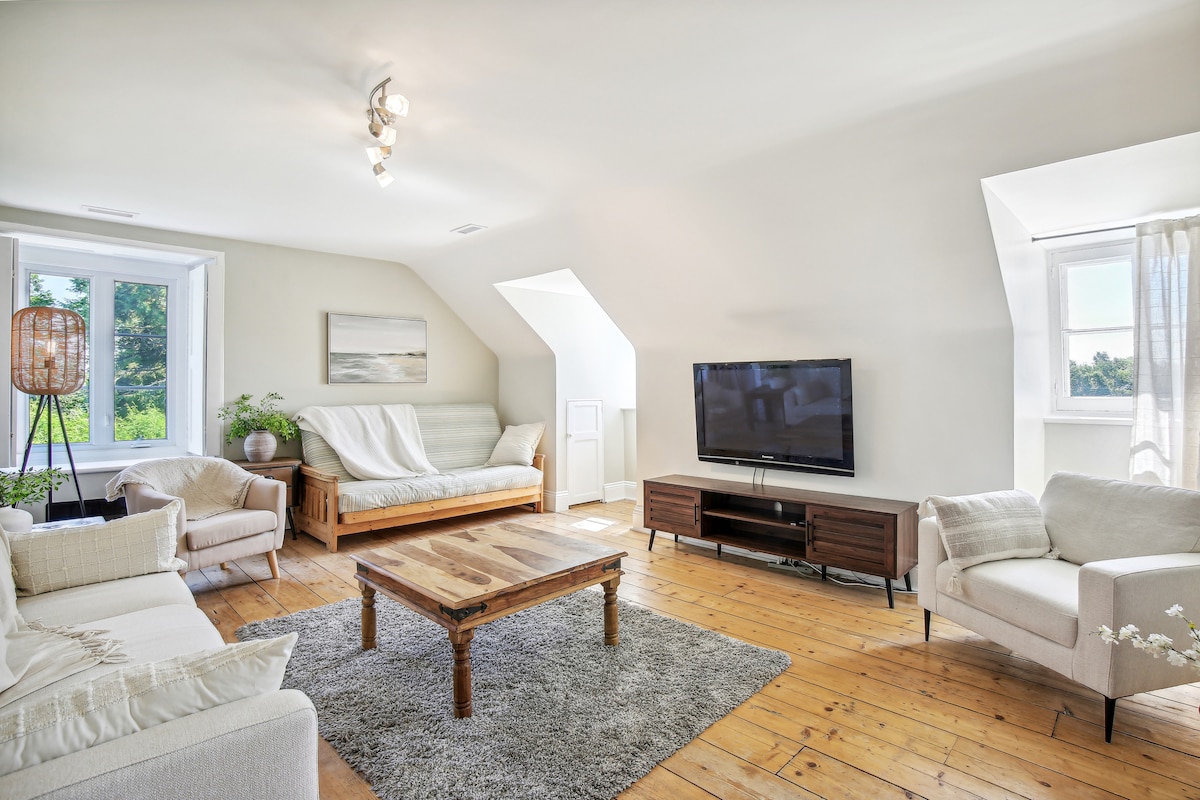 Topla starodavna hiša s 5 spalnicami (praktično 6) in 5 kopalnicami z edinstveno lokacijo, ki gleda na reko in pomol. Termostatske črpalke v vsaki spalnici. Stopnice do restavracij in trgovin. Hitro omrežje Wi-Fi. Uživajte na plaži za kyte, jadranje, SUP, kajakaštvo in kolesarjenje ali počitek v tem mirnem prenočišču. Možnost večjih skupin in dogodkov, stopite v stik z mano za stroške in podrobnosti. CITQ: 103946